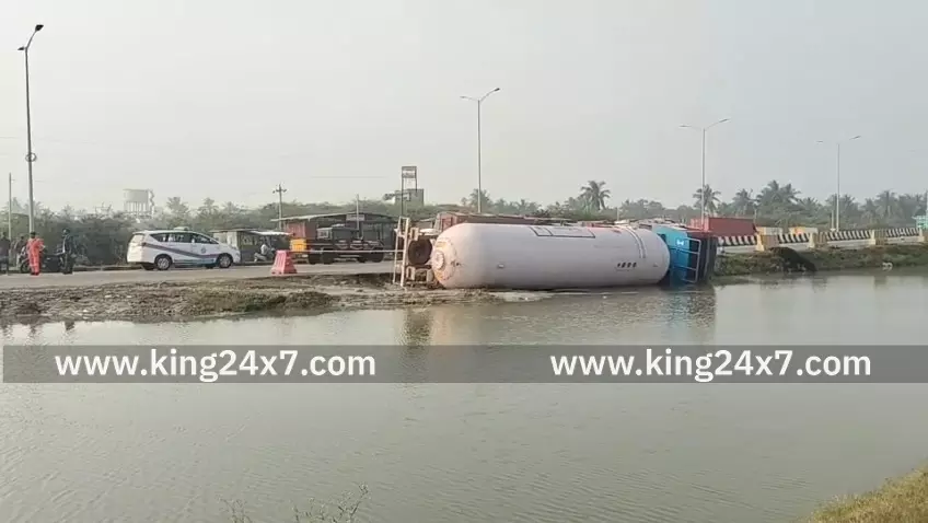 அத்திப்பட்டு புது நகரில் இந்தியன் ஆயில் நிறுவனத்தில் இருந்து கேஸ் நிரப்பி கொண்டு ஆந்திரா கடப்பா நோக்கி சென்ற போது கட்டுப்பாட்டை இழந்து சென்னை வெளிவட்ட சாலையில் கவிழ்ந்தது