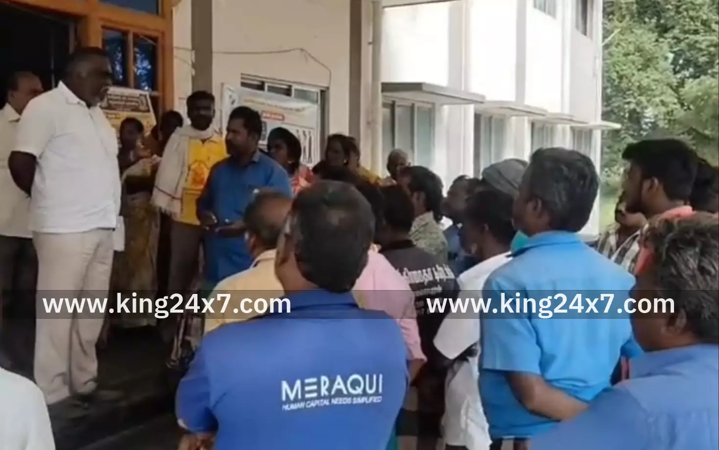 நிலக்கோட்டை வட்டாட்சியர் அலுவலகத்தை முற்றுகையிட்டு தரையில் அமர்ந்து தர்ணா போராட்டம்
