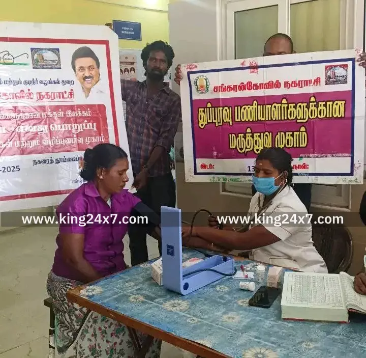 Tenkasi King 24x7 |13 Dec 2025 11:35 PM ISTசங்கரன்கோவில் தூய்மை பணியாளர்களுக்கு இலவச மருத்துவ முகாம்
