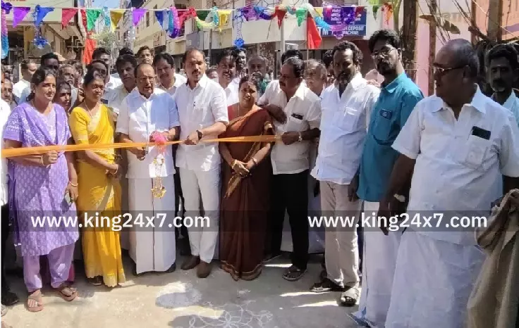 புதுக்கோட்டை கீழராஜா வீதி மாலைநேர மார்க்கெட் முதல் கீழ இரண்டாம் விதி வரையிலான புதிய பேவர் பிளாக் சாலை; அமைச்சர் எஸ்.ரகுபதி ரிப்பன் வெட்டி திறந்து வைப்பு!!