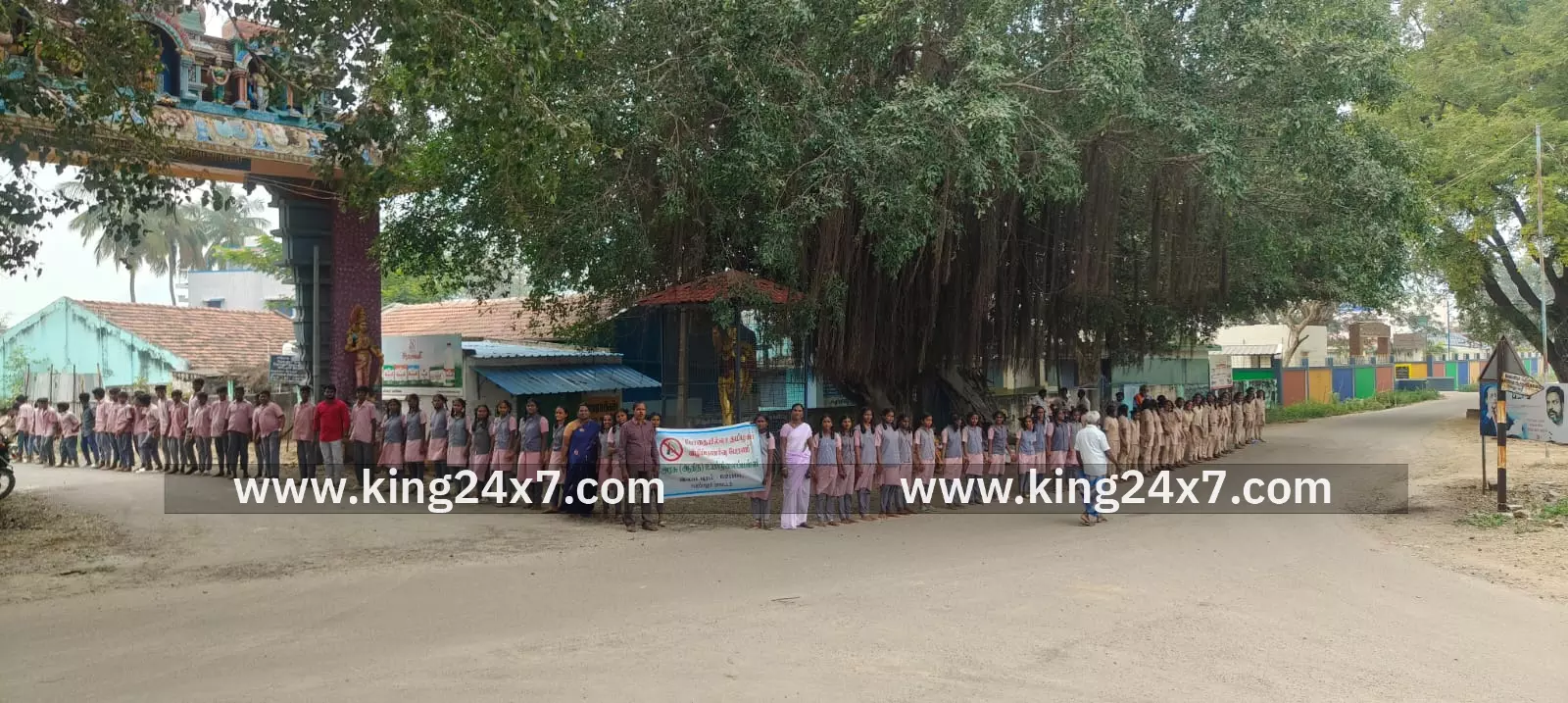 மனித சங்கிலி விழிப்புணர்வு ஏற்படுத்தி அரசு பள்ளி மாணவர்கள்