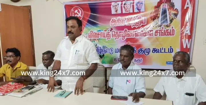 Karur King 24x7 |17 Dec 2025 8:03 AM ISTவிவசாய கூலி தொழிலாளர்களுக்கு குறைந்தபட்ச கூலி சட்டத்தை மத்திய மாநில அரசுகள் நிறைவேற்ற வேண்டும்-அகில இந்திய விவசாய தொழிலாளர் சங்கத்தின் மாநில தலைவர் சின்னதுரை கரூரில் பேட்டி.