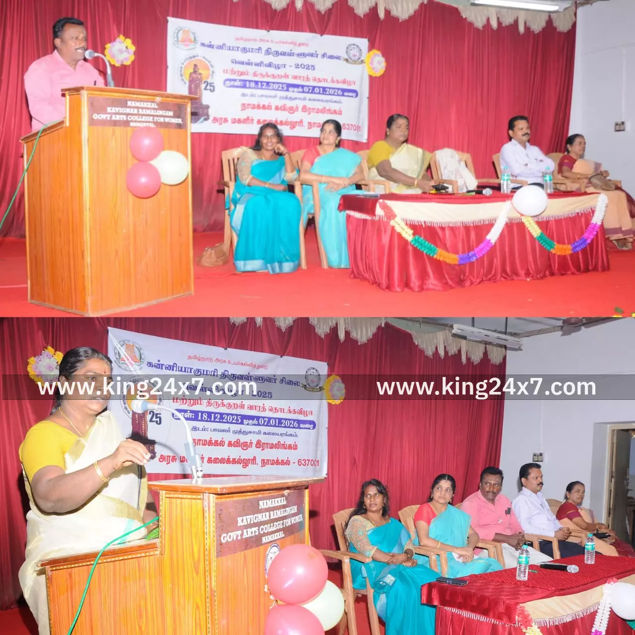 திருக்குறள் மனித வாழ்வில் இன்றியமையாத கொள்கைகளை இரண்டு அடியில் சொல்கிறது. உலக பொதுமறையான இது உலகில் பல மொழிகளில் மொழி பெயர்க்கப்பட்டுள்ளது.அறம், பொருள், காமம் என வாழ்வியலை பிரித்து நெறியோடு வாழ்வில் ஒத்து போகும் இந்த குறள் தனித்துவம் வாய்ந்தது.கன்னியாகுமரியில் கடல் நடுவே 133 அடி உயர திருவள்ளுவர் சிலை நிறுவப்பட்டு 25 ஆண்டுகள் நிறைவடைந்ததை முன்னிட்டு தமிழ்நாடு அரசு - உயர்கல்வித்துறை, நாமக்கல் கவிஞர் இராமலிங்கம் அரசு மகளிர் கலைக் கல்லூரியில் திருவள்ளுவர் சிலை திறப்பு வெள்ளி விழா மற்றும் திருக்குறள் வாரத் தொடக்க விழா நாமக்கல் பாவலர் முத்துசாமி கலையரங்கத்தில் நடைபெற்றது. அக்கல்லூரியின் தமிழ்த்துறைத் தலைவரும் (பொ) இணைப் பேராசிரியருமான முனைவர் சு. சுகன்யா அனைவரையும் வரவேற்று பேசினார்.கல்லூரி முதல்வர் முனைவர் அ. மாதவி தலைமையில் மூத்தப் பேராசிரியர்கள் முனைவர் செ.அலெக்சாண்டர் மற்றும் வி. எமீமாள் நவஜோதி வாழ்த்துரை வழங்கினர். சிறப்புப் பேச்சாளரை தமிழ்த்துறை இணைப் பேராசிரியர் முனைவர் பி.விஜயராணி அறிமுகம் செய்தார்.விழாவின் சிறப்பு அழைப்பாளராக நாமக்கல் அறிஞர் அண்ணா அரசு கலைக்கல்லூரியின் இணைப் பேராசிரியர் மற்றும் தமிழ்த்துறைத் தலைவர் முனைவர் பி .கந்தசாமி "குறளின் மேன்மை" என்ற தலைப்பில் சிறப்புரை ஆற்றினார்.இதில் திருக்குறள் பிரிவுகளான அறம், பொருள், இன்பம் என்ற பிரிவுகளில் வள்ளுவர் எழுதிய மனத்துக்கண் மாசிலன் ஆதல், தெய்வத்தால் ஆகாதெனினும், எண்ணென்ப ஏனை எழுத்தென்ப, மயிர் நீப்பின் உயிர் வாழாக் கவரிமான் என்ற குறட் கருத்துக்களை மேற்கோள் காட்டியதுடன் வள்ளுவர் தமிழ் மொழியின் முதன்மை எழுத்தான 'அ'கரத்தில் தொடங்கி, இறுதி எழுத்தான 'ன' கர ஒற்றில் நிறைவு செய்துள்ளமையையும் சுட்டிக்காட்டிப் பேசினார். திரைப்படங்களில் திருக்குறள் எடுத்தாளப்பட்டுள்ள திறத்தைத் தன் இனிமையான குரல் வளத்தால் பாடி மாணவிகளின் மனத்தில் பதிவு செய்த விதம் அனைவரையும் கவரும் வகையில் இருந்தது. இறுதியில் தமிழ்த்துறை கௌரவ விரிவுரையாளர் ப. கௌரி நன்றி கூறினார். விழா ஏற்பாடுகளை தமிழ்த்துறை ஆசிரியர்கள், கல்லூரி மாணவிகள் செய்து இருந்தனர்.ஆண்டுதோறும் டிசம்பர் கடைசி வாரம் குறள் வாரமாக கொண்டாடப்படும்' என முதல்வர் மு.க.ஸ்டாலின் கடந்த வருடம் அறிவித்தார் என்பது குறிப்பிடத்தக்கது.
