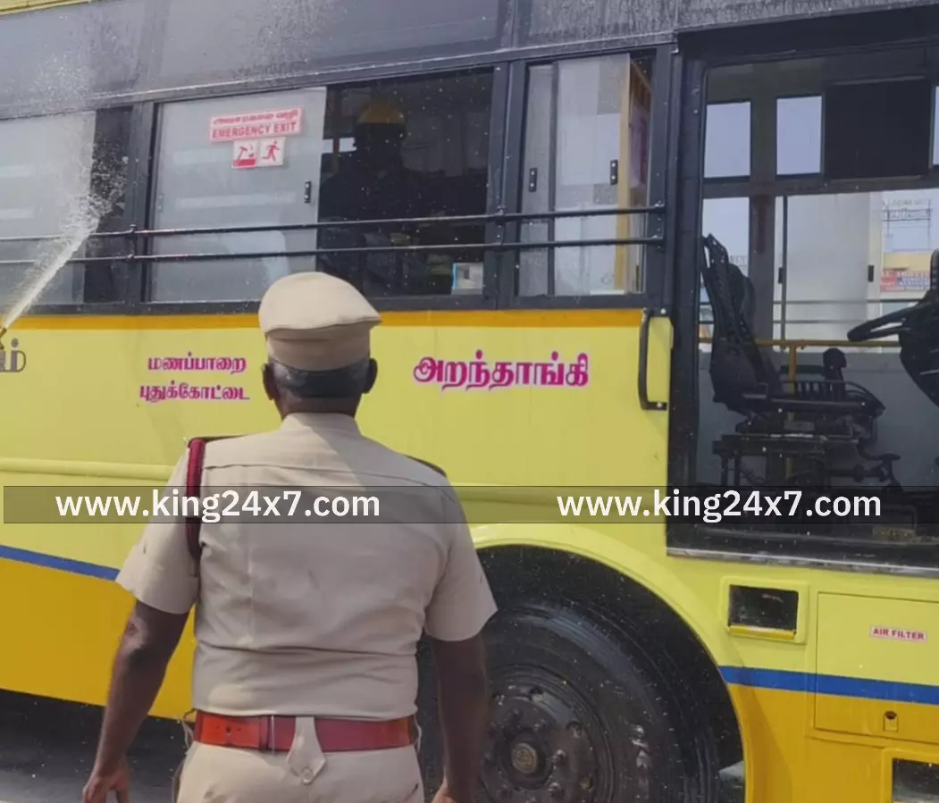 திண்டுக்கல் பேருந்து நிலையத்திற்கு போடியிலிருந்து அறந்தாங்கி செல்வதற்காக வந்த அரசு பேருந்து நின்று கொண்டிருந்தது. அப்போது அரசு பேருந்தின் இஞ்சின் பகுதியில் திடீரென தீப்பற்றி எரிந்தது. உடனடியாக அரசு பேருந்தில் டிரைவர்,நடத்துனர் பேருந்து நிலையத்தில் இருந்த மற்ற டிரைவர்கள் உதவியுடன் போராடி தீயை அணைக்க முயற்சி செய்தனர் தகவல் அறிந்து சம்பவ இடத்திற்கு விரைந்து வந்த திண்டுக்கல் தீயணைப்பு நிலைய மாவட்ட உதவி அலுவலர் மயில்ராஜ் தலைமையிலான தீயணைப்பு வீரர்கள் தீயை அணைத்தனர் இதுகுறித்து நகர் வடக்கு காவல் நிலைய போலீசார் விசாரணை மேற்கொண்டு வருகின்றனர்