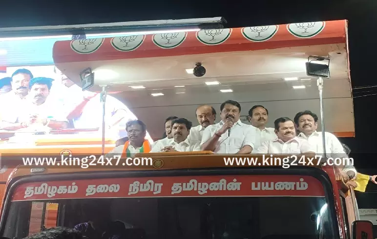 திருச்சியில் தமிழக பா.ஜ.க தலைவர் நயினார் நாகேந்திரன் பரப்புரை மேற்கொண்டார்.