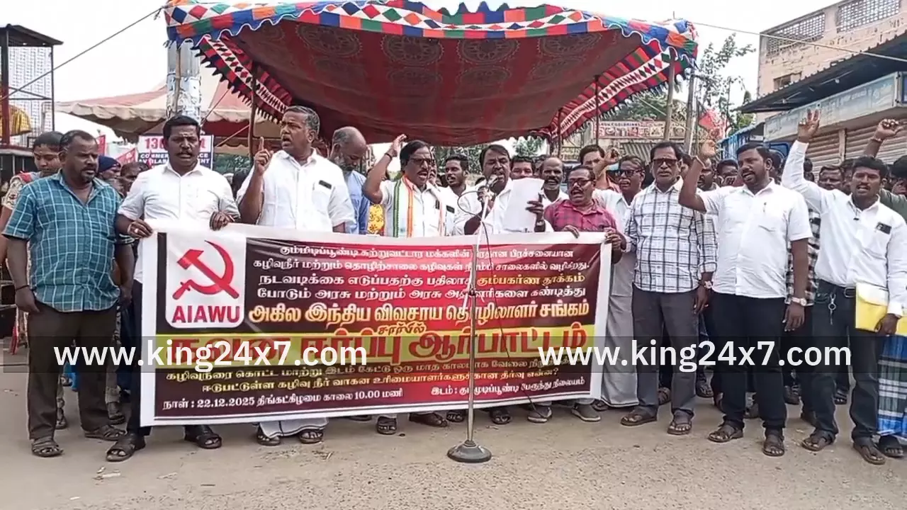 திருவள்ளூர் மாவட்டம் கும்மிடிப்பூண்டி தாமரை பெரிய ஏரியில் மழைக்காலங்களில் தேங்கும் தண்ணீரை 50க்கும் மேற்பட்ட கிராமங்களைச் சேர்ந்த விவசாயிகள் பாசனத்திற்காகவும், தங்களது கால்நடைகளை பராமரிக்கவும் பயன்படுத்தி வருகின்றனர், இந்த நிலையில் அப்பகுதியில் உள்ள தனியார் தொழிற்சாலைகளில் இருந்து வெளியேற்றப்படும் ரசாயன கழிவுகள் ஏரியில் விடப்படுவதால் ஏரி நீர் மாசடைந்து சுற்றுச்சூழல் பாதிப்பு ஏற்பட்டுள்ளதால் ஏரியை பாதுகாக்க வலியுறுத்தியும், குடியிருப்பு பகுதிகளில் கழிவு நீர் ஊர்திகள் மூலம் சேகரிக்கப்படும் கழிவு நீரை பொது இடங்களில் விடுவதற்கு மாவட்ட நிர்வாகம் தடை விதித்துள்ளது. இதனால் பாதிக்கப்பட்ட கழிவு நீர் ஊர்தி உரிமையாளர்கள் கும்மிடிப்பூண்டி பகுதியில் கழிவினை சுத்திகரிப்பு ஆலை அமைக்கும் வரை கல்வி நீரை வெளியேற்ற தங்களுக்கு அரசு தற்காலிக மாற்றிய இடம் ஒதுக்க கோரி ஒரு மாத காலமாக வேலை நிறுத்த போராட்டத்தில் ஈடுபட்டு வருகின்றனர், இதன் காரணமாக குடியிருப்பு பகுதிகளில் மலக்கழிவுகளும் கழிவு நீரும் அகற்றப்படாததால் துர்நாற்றம் வீசுவதோடு சுகாதார சீர்கேடு ஏற்பட்டு வருகிறது. இதற்கு மாற்று ஏற்பாடு செய்யாமல் அலட்சியம் காட்டி வரும் வட்டார வளர்ச்சி அலுவலர், மாவட்ட ஆட்சியர் ஆகியோரை கண்டித்தும், தாமரை ஏரியை உடனடியாக தூர்வாரி பராமரிக்க வேண்டும் என வலியுறுத்தியும் விவசாயிகள் கண்டன ஆர்ப்பாட்டத்தில் ஈடுபட்டனர், அப்போது குடியிருப்புகளில் ஒரு மாத காலமாக கழிவு நீர் அகற்றப்படாமல் தேங்கி நிற்பதால் ஏற்படும் சுகாதார சீர்கெட்டை தடுக்க உடனடியாக மாவட்ட நிர்வாகமும் தமிழக அரசும் போர்க்கால அடிப்படையில் நடவடிக்கை எடுக்க வேண்டும் என வலியுறுத்தி விவசாயிகள் கண்டன முழக்கங்களை எழுப்பினர்.