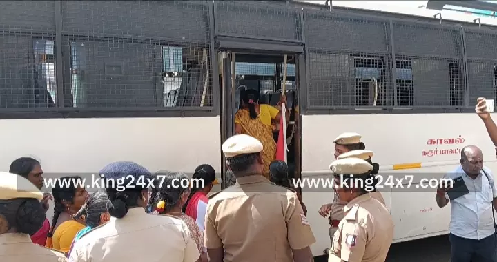 கரூரில் தொழிலாளர் விரோத நான்கு சட்ட தொகுப்புகளை திரும்பப் பெற வலியுறுத்தி சிஐடியு சார்பில் மறியல் போராட்டம். தொழிலாளர் விரோத நான்கு சட்ட தொகுப்புகளை திரும்ப பெற வலியுறுத்தி சிஐடியு சார்பில் மாநிலம் தழுவிய மறியல் போராட்டம் இன்று நடைபெற்றது. இதன் தொடர்ச்சியாக கரூர் காமராஜர் சிலை ரவுண்டானாவில் சி ஐ டி யு மாவட்டத் துணைத் தலைவர் ஜீவானந்தம் தலைமையில் கோரிக்கைகளை வலியுறுத்தி கண்டன ஆர்ப்பாட்டம் நடத்தினர். இந்த ஆர்ப்பாட்டத்தில் மாநில செயலாளர் கோபி குமார், மாவட்ட தலைவர் ராஜா முஹம்மது, மாவட்ட செயலாளர் சுப்பிரமணியன், கரூர் மாமன்ற உறுப்பினர் தண்டபாணி உள்ளிட்ட சிஐடியு மாவட்ட அளவிலான நிர்வாகிகள், உறுப்பினர்கள் கலந்து கொண்டு தங்களது கோரிக்கைகளை வலியுறுத்தி கோஷங்களை எழுப்பினர். அப்போது 8 மணி நேர வேலை பூமியை பறிக்கும் செயலைக் கண்டித்தும், நிரந்தர பணிகளில் காண்ட்ராக்ட் முறையை கண்டித்தும், கட்டுமான முறைசாரா தொழிலாளர்கள் நல வாரியங்களை கார்ப்பரேட் மயமாக்கும் மத்திய அரசை கண்டித்து கண்டன கோஷங்களை எழுப்பினர். தொடர்ந்து கரூர் - திருச்சி சாலையில் அமர்ந்து சாலை மறியல் போராட்டத்தில் ஈடுபட்டனர். இதனால் போக்குவரத்து பாதிப்பு ஏற்பட்டது. சாலை மறியல் போராட்டத்தில் ஈடுபட்டவர்களை காவல்துறையினர் கைது செய்து தனியார் திருமண மண்டபத்தில் சிறை வைத்தனர்.