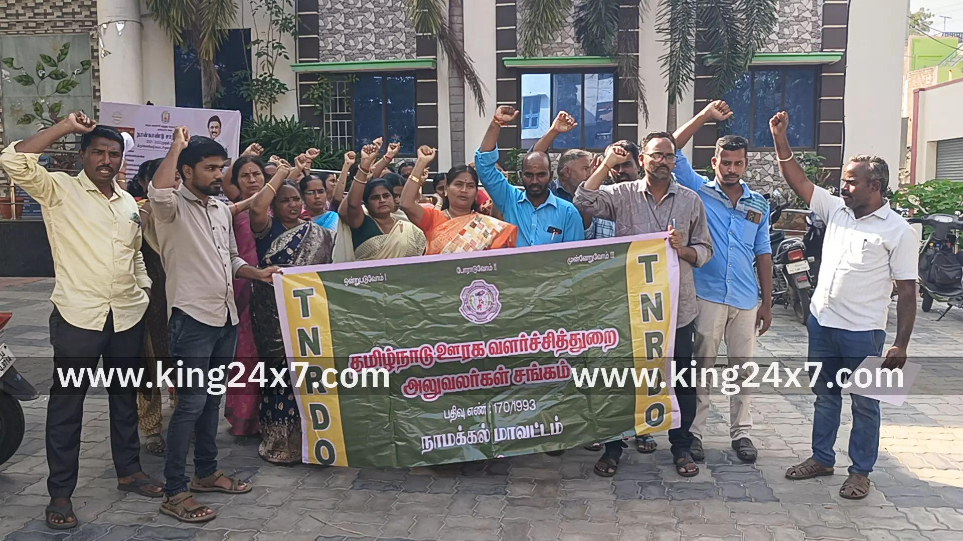 Tiruchengode King 24x7 |24 Dec 2025 8:04 PM ISTமகாத்மா காந்தி தேசிய ஊரக வேலை உறுதித் திட்டத்தின் பெயரை மாற்றியதோடு திட்டத்திற்கான மத்திய அரசின் நிதியினை வெகுவாக குறைத்துள்ள மத்திய பிஜேபி அரசின் மக்கள் விரோத போக்கைகண்டித்து மசோதாவை திரும்ப பெற வலியுறுத்தி தமிழ்நாடு ஊரக வளர்ச்சி துறை அலுவலர்கள் சங்கத்தின் சார்பில்ஆர்ப்பாட்டம் நடைபெற்றது