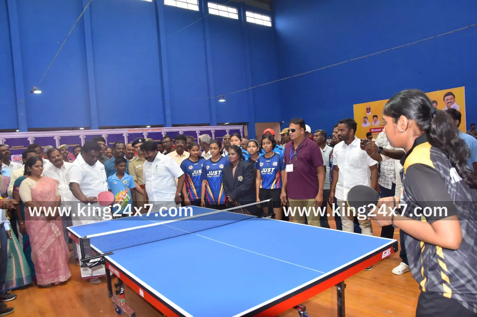 இந்திய பள்ளிகள் விளையாட்டுக் குழுமம் சார்பில் பள்ளிகளுக்கு இடையே 69வது தேசிய அளவிலான டேபிள் டென்னிஸ் விளையாட்டு போட்டிகள் பெரம்பலூர் மாவட்ட ஆட்சியர் பெருநதிட்ட வளாகத்தில் உள்ள புரட்சி தலைவர் பாரத ரத்னா டாக்டர் எம்.ஜி.ஆர் விளையாட்டு அரங்கத்தில் இன்று துவங்கியது. தமிழக போக்குவரத்து மற்றும் மின்சார துறை அமைச்சர் சா. சி . சிவசங்கர் விளையாட்டு போட்டிகளை தொடங்கி வைத்தார். இப்போட்டிகள் குழு மற்றும் தனிநபர் (லீக் மற்றும் நாட்கோட்) முறையில் நடைபெறுகிறது. போட்டியில் 31 மாநிலங்களிலிருந்து 36 அணிகளை சேர்ந்த 17வயதுக்குட்பட்ட 178 மாணவர்கள், 171 மாணவிகள் கலந்து கொண்டு விளையாடுகின்றனர். தமிழ்நாடு டேபிள் டென்னிஸ் விளையாட்டு போட்டி கழகம் மற்றும் உடற்கல்வி ஆசிரியர்கள் 25 பேர் போட்டி நடுவராக பணியாற்றுகின்றனர். இப்போட்டியில் முதல் மூன்று இடம் பெறும் மாணவ, மாணவிகளுக்கு சான்றிதழ்கள், பதங்கங்கள், கோப்பைகள் வழங்கப்படும். மேலும் போட்டியில் கலந்து கொண்ட மாணவ, மாணவியர்களுக்கு சான்றிதழ்கள் வழங்கப்படவுள்ளது . நிகழ்ச்சியில் மாவட்ட ஆட்சியர் ந.மிருணாளினி, சட்ட மன்ற உறுப்பினர் பிரபாகரன் , மாவட்ட காவல் துறை கண்காணிப்பாளர் ஆதர்ஷ் பசேரா உட்பட பலர் கலந்து கொண்டனர்.