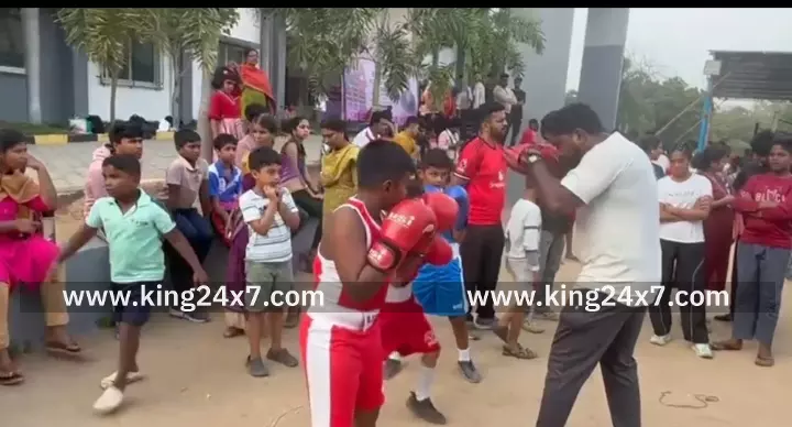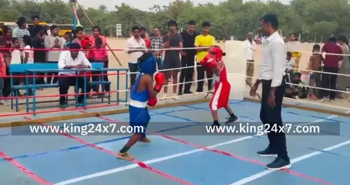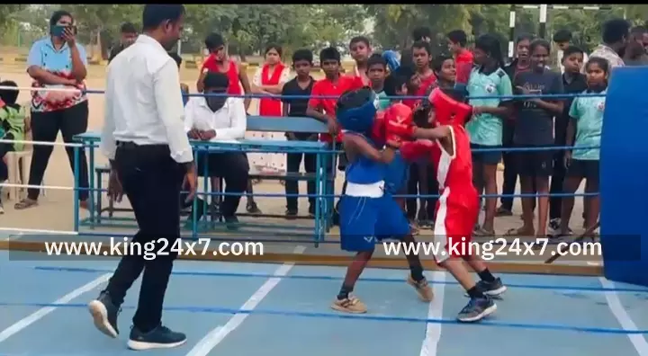 கரூரில் நடைபெற்ற மாநில அளவிலான குத்துச்சண்டை போட்டியில் மாணாக்கர்கள் நேரடி மோதல் காட்சிகளால் பார்வையாளர்கள் பரவசம்.