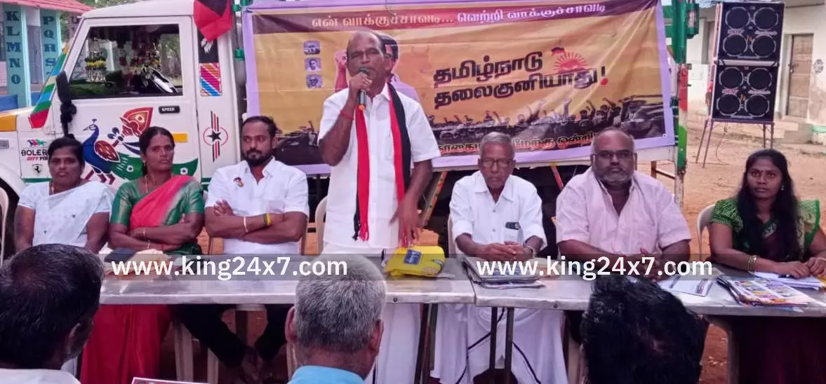 கரூர் மாவட்டம் தோகைமலை மேற்கு ஒன்றிய திமுக சார்பாக என் வாக்குச்சாவடி வெற்றி வாக்குச்சாவடி என்ற தலைப்பின் கீழ் திண்ணைப் பிரச்சாரம், மக்கள் சந்திப்பு நிகழ்ச்சி முன்னால் எம்எல்ஏ மற்றும் தோகைமலை மேற்கு ஒன்றிய செயலாளர் ராமர் மேற்பார்வையில் நடந்தது. இந்த நிகழ்ச்சிக்கு தோகைமலை மேற்கு ஒன்றிய துணை செயலாளர் ராகவன் தலைமை வகித்தார். மாவட்ட மகளிரணி வளைதள பொறுப்பாளர் தீபா சக்திவேல், ஒன்றிய அவைத்தலைவர் தங்கராசு, ஒன்றிய இளைஞரணி அமைப்பாளர் கதிரவன், ஒன்றிய வர்த்தக அணி அமைப்பாளர் விநாயகம், ஒன்றிய மகளிரணி அமைப்பாளர் அண்ணலெட்சுமி செல்வமணி, இளைஞரணி துணை அமைப்பாளர் தமிழழகன் ஆகியோர் முன்னிலை வகித்தனர். இதில் தோகைமலை மேற்கு ஒன்றிய துணை செயலாளர் ராகவன் பேசும்போது: தலைமை கழகத்தின் ஆலேசனைப்படி, கரூர் மாவட்ட கழக செயலாளர் மற்றும் முன்னால் அமைச்சர் செந்தில்பாலாஜியின் வழிகாட்டுதல்படி, தோகைமலை மேற்கு ஒன்றிய செயலாளர் மற்றும் முன்னால் எம்எல்ஏ ராமர் மேற்பார்வையில் 2026 சட்டமன்ற பொதுத் தேர்தல் பணிக்கான பணிகள் பில்லூர் ஊராட்சிகளில் நடைபெற்று வருகிறது. நமது வாக்குச்சாவடி மையங்களுக்கு உட்பட்ட பகுதிகளில் வீடுவீடாக சென்று களப்பணிகளை சிறப்பாக செய்ய தலைமைக் கழகம் ஆலோசனை வழங்கி உள்ளது. இதற்காக நமது அரசு செய்து வரும் திட்டங்களை நமது கழக நிர்வாகிகள் பொதுமக்களிடம் கூறவேண்டும். இதில் மகளிருக்கு கட்டணமில்லா பேருந்து பயணம், மகளிர் உரிமைத்தொகை, காலை உணவு திட்டம், மக்களை தேடி மருத்துவம், இன்னுயிர் காப்போம் திட்டம், கலைஞரின் வருமுன் காப்போம், இல்லம் தேடி கல்வித்திட்டம், நான் முதல்வன் திட்டம், மக்களுடன் முதல்வர் திட்டம், உங்கள் தொகுதியில் முதலமைச்சர் திட்டம், முதலமைச்சரின் தாயமானவர் திட்டம், கலைஞர் கனவு இல்லம், புதுமைப்பெண் திட்டம், உங்களுடன் ஸ்டாலின், தமிழ் புதல்வன் திட்டம் உள்பட எண்ணற்ற திட்டங்கள் மூலம் பொதுமக்கள் பயன்பெற்று வருவதை மக்களிடம் நாம் எடுத்துக்கூற வேண்டும். இதன் மூலம் பில்லூர் வாக்குச்சாவடி மையத்தில் திமுகவிற்கு அதிகமான வாக்குகள் பதிவு செய்து நமது கழகம் அறிவிக்கும் வேட்பாளரை வெற்றிபெற செய்து, மீண்டும் நமது ஆட்சி அமைய அனைவரும் அணி திரளவேண்டும் என்று கூறினார். இந்த நிகழ்ச்சியில் மகளிரணி துணை அமைப்பாளர் மகேஸ்வரி, நிர்வாகிகள் சுப்பிரமணி, பிச்சை, லெட்சுமமோகன், முத்துராமன், பெருமாள், மனோகரன், முருகேசன், ரவி, பாலசுப்பிரமணி உள்பட பலர் கலந்து கொண்டனர்.
