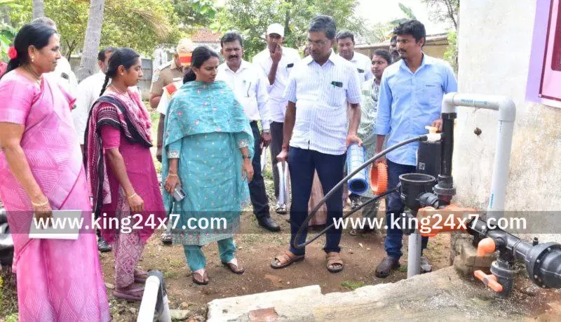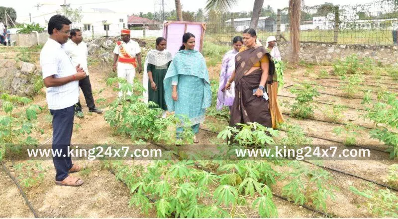 தோட்டக்கலைத் துறை மற்றும் வேளாண்மைத் துறையின் சார்பில் நுண்ணீர் பாசனம் அமைக்கப்பட்டுள்ளதை, பார்வையிட்டு ஆய்வு மேற்கொண்ட மாவட்ட ஆட்சியர்.