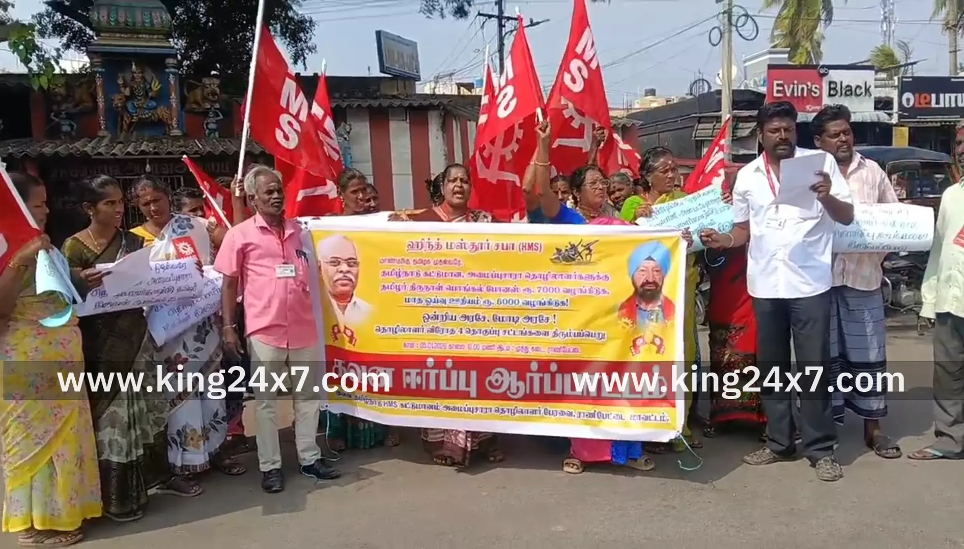 Ranipet King 24x7 |5 Jan 2026 9:48 PM ISTஇந்து மஸ்தூர் சபா தமிழ்நாடு கட்டுமான அமைப்பு சாரா பேரவையின் தொழிலாளர் பேரவை சார்பில், மத்திய மற்றும் மாநில அரசுகளை கண்டித்து ராணிப்பேட்டை முத்துகடை பேருந்து நிலையம் அருகே கவன ஈர்ப்பு ஆர்ப்பாட்டம் நடைபெற்றது.