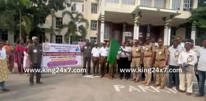 Karur King 24x7 |6 Jan 2026 12:46 PM ISTகரூரில் விபத்தில்லா தமிழகத்தை உருவாக்க ஓட்டுநர்களுக்கான விழிப்புணர்வு பேரணி நடைபெற்றது.