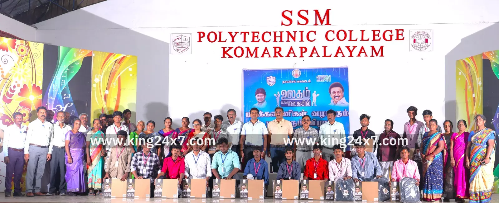 Komarapalayam King 24x7 |6 Jan 2026 8:42 PM ISTகுமாரபாளையம் அரசு உதவி பெறும் பாலிடெக்னிக் கல்லூரியில் தமிழக அரசின் மடிக்கணினி வழங்கும் விழா நடந்தது.