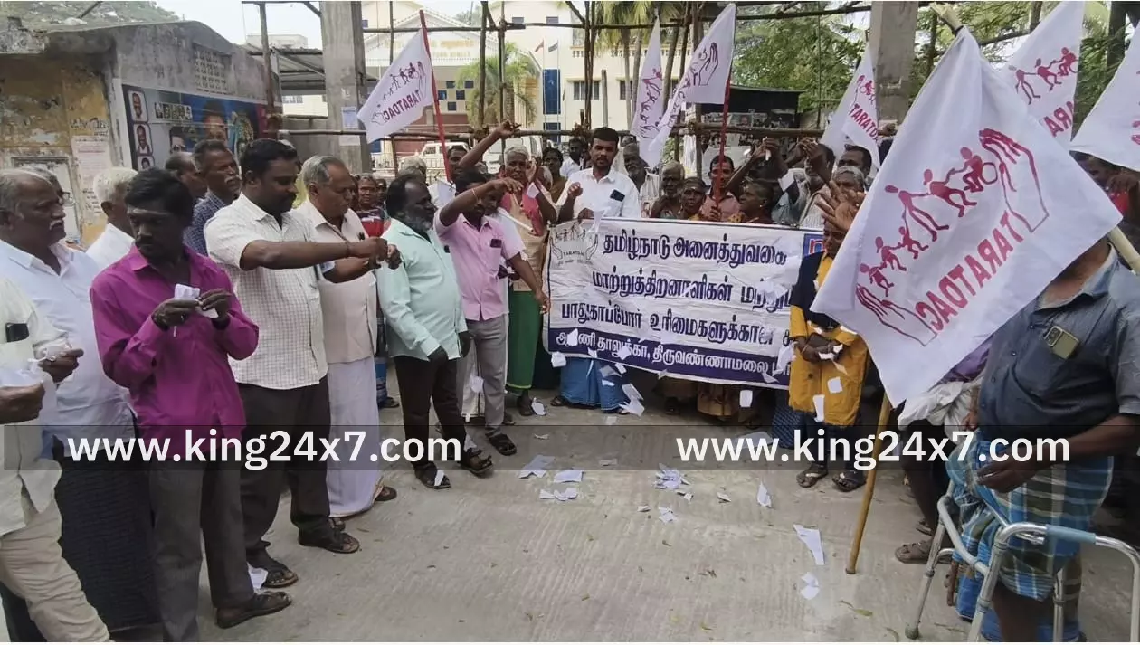 ஆரணி ஊராட்சி ஒன்றிய அலுவலகங்கள் முன்பு மாற்றுத்திறனாளிகள் ஆர்ப்பாட்டம்.