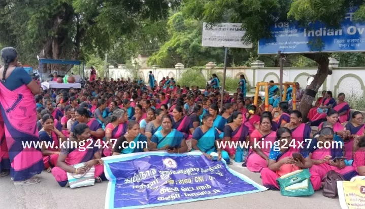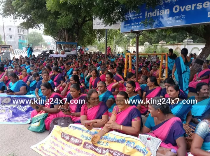 Karur King 24x7 |7 Jan 2026 12:18 PM ISTகரூரில், கோரிக்கைகளை வலியுறுத்தி தமிழ் நாடு நாடு சத்துணவு மற்றும் அங்கன்வாடி கூட்டமைப்பின் சார்பில் ஒரு நாள் அடையாள வேலை நிறுத்த போராட்டம்.