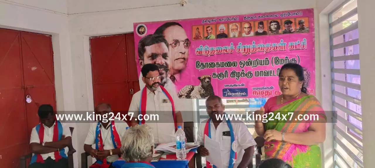 விடுதலைச் சிறுத்தைகள் கட்சி குளித்தலை தொகுதி புதிய நிர்வாகிகள் அறிமுகம், கட்சி உட்கட்டமைப்பு, தேர்தல் பணி, பிஎல்ஏ 2 ஆகியவை குறித்து கலந்தாய்வு கூட்டம் தோகைமலையில் இன்று நடைபெற்றது. தோகைமலை மேற்கு ஒன்றிய செயலாளர் ராஜ்குமார் தலைமை வகித்தார். இளஞ்சிறுத்தை எழுச்சி பாசறை ஒன்றிய அமைப்பாளர் கலைவாணன் வரவேற்புரை நிகழ்த்தினார். கிழக்கு மாவட்ட செயலாளர் குறிச்சி சக்திவேல் என்கிற ஆற்றலரசு, பெரம்பலூர் மண்டல செயலாளர் வழக்கறிஞர் ஸ்டாலின், மண்டல துணைச் செயலாளர் பெரியசாமி ஆகியோர் குளித்தலை தொகுதி குறித்து சிறப்புரையாற்றினர். இதில் ஒன்றிய பொருளாளர் மகாதேவன், ஒன்றிய துணை செயலாளர் மலைவேல், கல்வி பொருளாதர இயக்கம் மாவட்ட அமைப்பாளர் பாலகுமார், இளஞ்சிறுத்தை எழுச்சி பாசறை சரத்குமார், ரேணுகாதேவி, ராமன், பாலசுப்பிரமணி, அன்னலட்சுமி, ஜோதிமணி, பழனிச்சாமி, வடிவேல், மனோஜ், காளிமுத்து, குமரவேல், நாகேஸ்வரன், குணசேகரன், ரவிச்சந்திரன், வினித், ரத்தினவேல், சங்கப்பிள்ளை மற்றும் கட்சி நிர்வாகிகள் கலந்து கொண்டனர்.