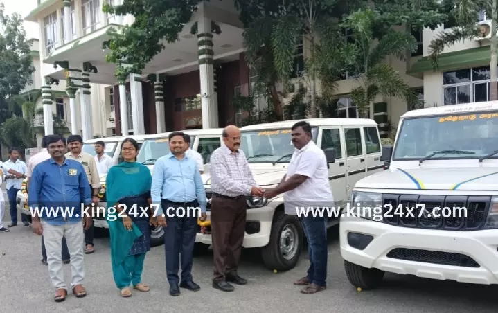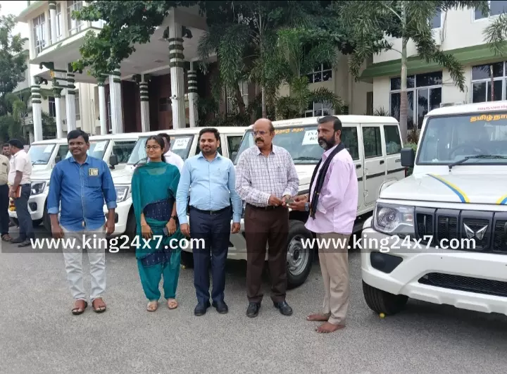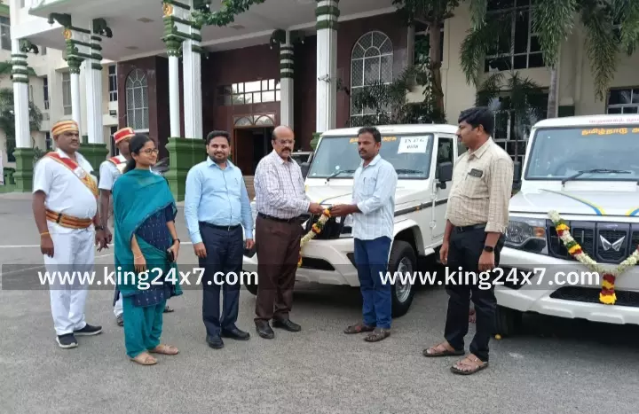 Karur King 24x7 |8 Jan 2026 7:40 PM ISTகரூர் அரசு அதிகாரிகளின் பயன்பாட்டுக்காக புதிய ஈப்பு வாகனங்களை வழங்கி வாழ்த்தினார் ஆட்சியர் தங்கவேல்.