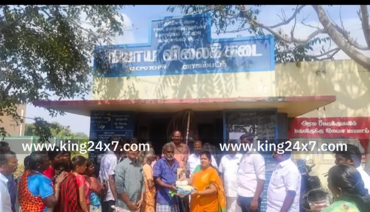 Karur King 24x7 |8 Jan 2026 7:46 PM ISTதரகம்பட்டியில் குடும்ப அட்டைதாரர்களுக்கு பொங்கல் தொகுப்பினை வழங்கி வாழ்த்து தெரிவித்தார் எம் எல் ஏ சிவகாமசுந்தரி.