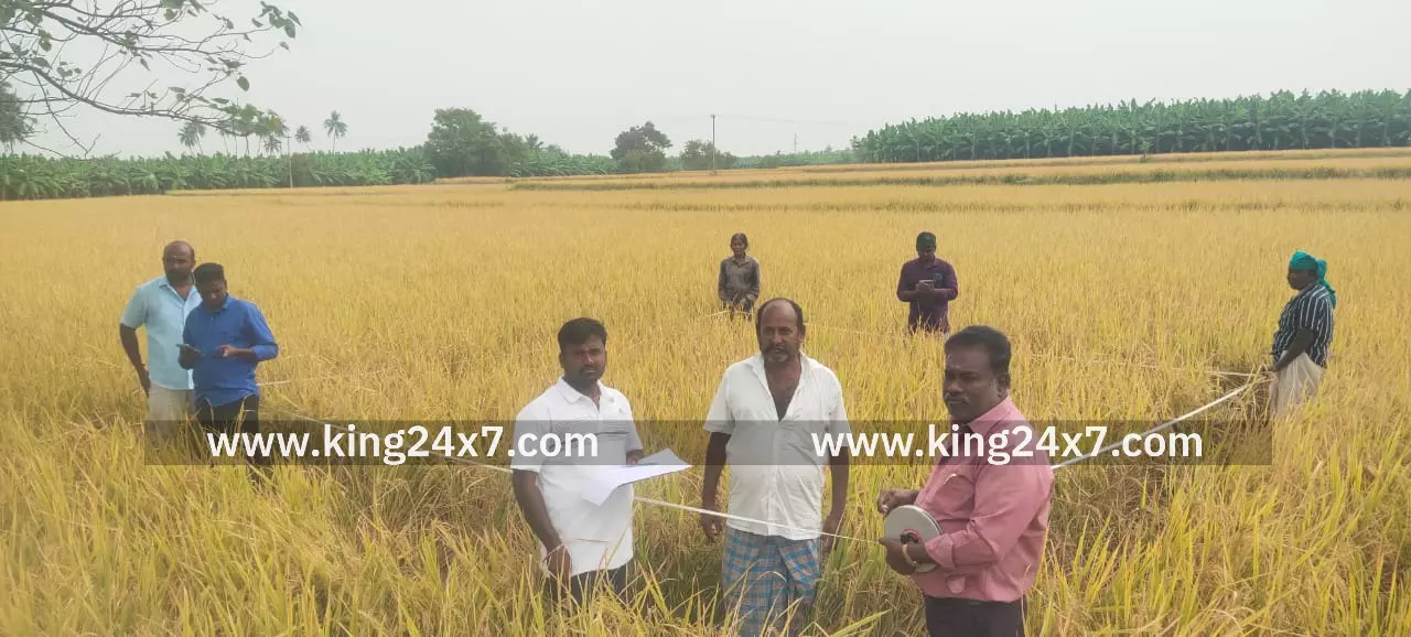 கரூர் மாவட்டம் குளித்தலை அருகே உள்ள மருதூர் தெற்கு-1 பணிக்கம்பட்டி கிராமத்தில் புள்ளி இயல் துறையின் பயிர் மதிப்பீட்டாய்வு திட்டத்தின் கீழும், பிரதம மந்திரி பயிர் காப்பீட்டு திட்டத்தின் அடிப்படையிலும் நெல் அறுவடை பரிசோதனை நேற்று நடைபெற்றது. புள்ளி இயல் துறை அதிகாரி சிவக்குமார் தலைமையில், துணை வேளாண்மை அலுவலர் கணேசன் முன்னிலையில், பணிக்கம்பட்டியை சேர்ந்த விவசாயிகள் விஜயகுமார், இந்து சேகரன் ஆகியோரின் நெல் வயல்களில் பயிர் அறுவடை பரிசோதனை நடைபெற்றது. இப்பரிசோதனையில் பயிர் அறுவடை பரிசோதனை மேற்கொள்ளப்பட்டு, ஒவ்வொரு பயிரின் மகசூலும் கணிக்கப்பட்டு, மக்கள் தொகைக்கு ஏற்ப உணவு உற்பத்தி செய்யப்படுவதை உறுதிப்படுத்துவதற்காகவும், சாகுபடி பரப்பினையும், உற்பத்தி அளவையும் கண்காணிக்கவும், இயற்கை இடர்பாடுகள் ஏற்படும் நேரத்தில் பயிர் இழப்பினை கணித்து பயிர் காப்பீட்டுத் தொகை வழங்கவும் இம்மாதிரியான பயிர் அறுவடை பரிசோதனை மேற்கொள்ளப்படுகிறது. அதன்படி 2025 ஆகஸ்ட் மற்றும் செப்டம்பர் மாதத்தில் நெல் நடவு செய்யப்பட்டு, 2025 நவம்பர் மாதத்தில் தேர்வு செய்யப்பட்டு, 2026 ஜனவரி மாதம் அறுவடை பணிகள் மேற்கொள்ளப்பட்டு வருகிறது. இந்த பரிசோதனையில் குளித்தலை வேளாண்மை அலுவலர் மகேந்திரன், உதவி வேளாண்மை அலுவலர் செல்லப்பன், பயிர் அறுவடை பரிசோதனை வல்லுநர் அகிலன், உதவி தொழில்நுட்ப மேலாளர் செல்வராஜ் மற்றும் பஜாஜ் ஜெனரல் இன்சூரன்ஸ் கம்பெனி மாவட்ட மேலாளர் கார்த்திக்வேல், வட்டார மேலாளர் கண்ணன் மற்றும் விவசாயிகள் விஜயகுமார், மதியழகன், சந்திரன், செல்வராணி, ராணி ஆகியோர் உடன் இருந்தனர்.