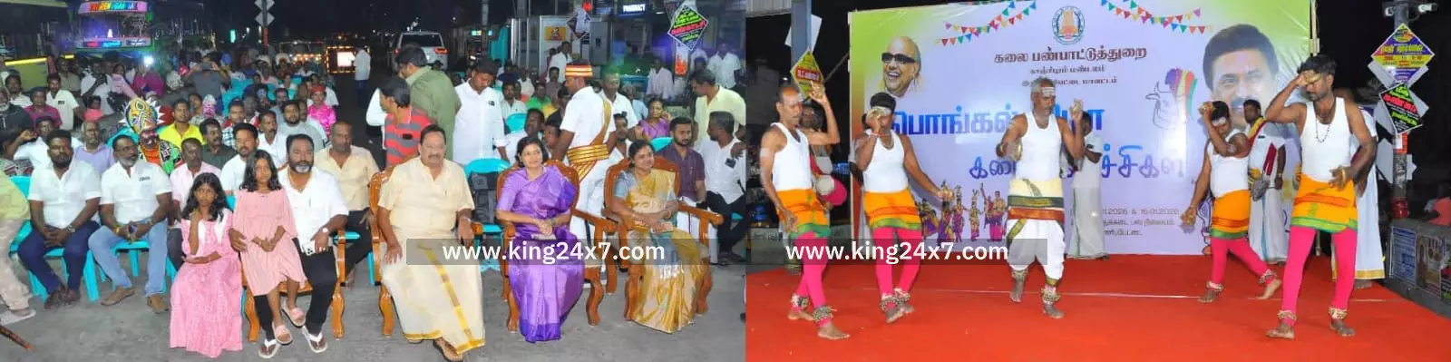 Ranipet King 24x7 |16 Jan 2026 9:41 AM ISTராணிப்பேட்டை மாவட்டம் தமிழக கைத்தறி மற்றும் துணிநூல் துறை அமைச்சர் ஆர்.காந்தி இராணிப்பேட்டை முத்துக்கடை பேருந்து நிறுத்தத்தில் கலை பண்பாட்டுத் துறை சார்பில் கலை நிகழ்ச்சிகளை பறை இசையடித்து தொடங்கி வைத்தார்கள். உடன் மாவட்ட ஆட்சித்தலைவர்