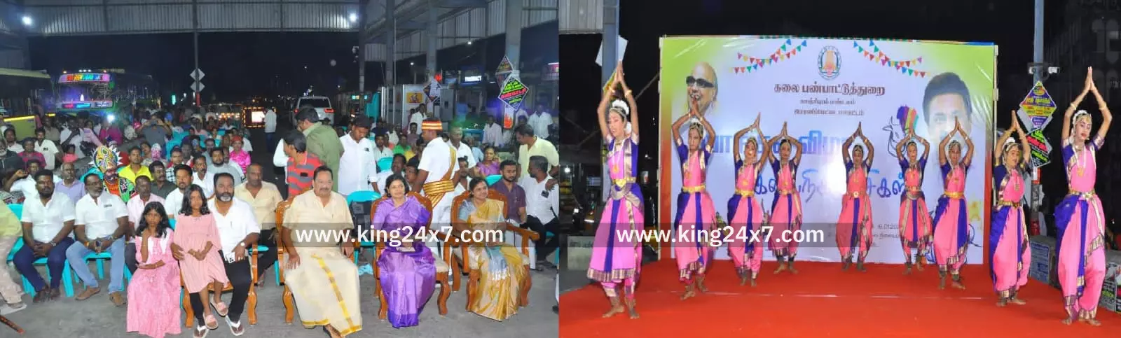 தமிழக கைத்தறி மற்றும் துணிநூல் துறை அமைச்சர் ஆர்.காந்தி இராணிப்பேட்டை முத்துக்கடை பேருந்து நிறுத்தத்தில் கலை பண்பாட்டுத் துறை சார்பில் கலை நிகழ்ச்சிகளை பறை இசையடித்து தொடங்கி