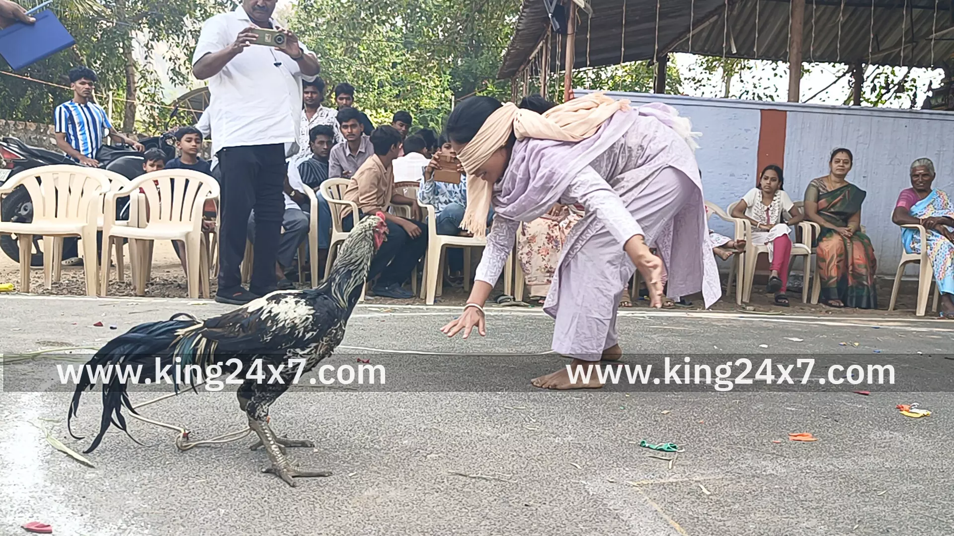 திருச்செங்கோட்டில் நவீன ஜல்லிக்கட்டு என்ற பெயரில் கோழி பிடிக்கும் போட்டி நடைபெற்றது இதில் பெண்கள் மற்றும் குழந்தைகள் என ஏராளமான கலந்து கொண்டனர்