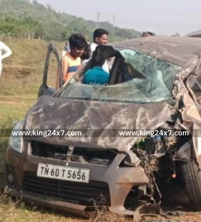 நத்தம் அருகே சாலை தடுப்பில் மோதி சொகுசு கார் விபத்து*