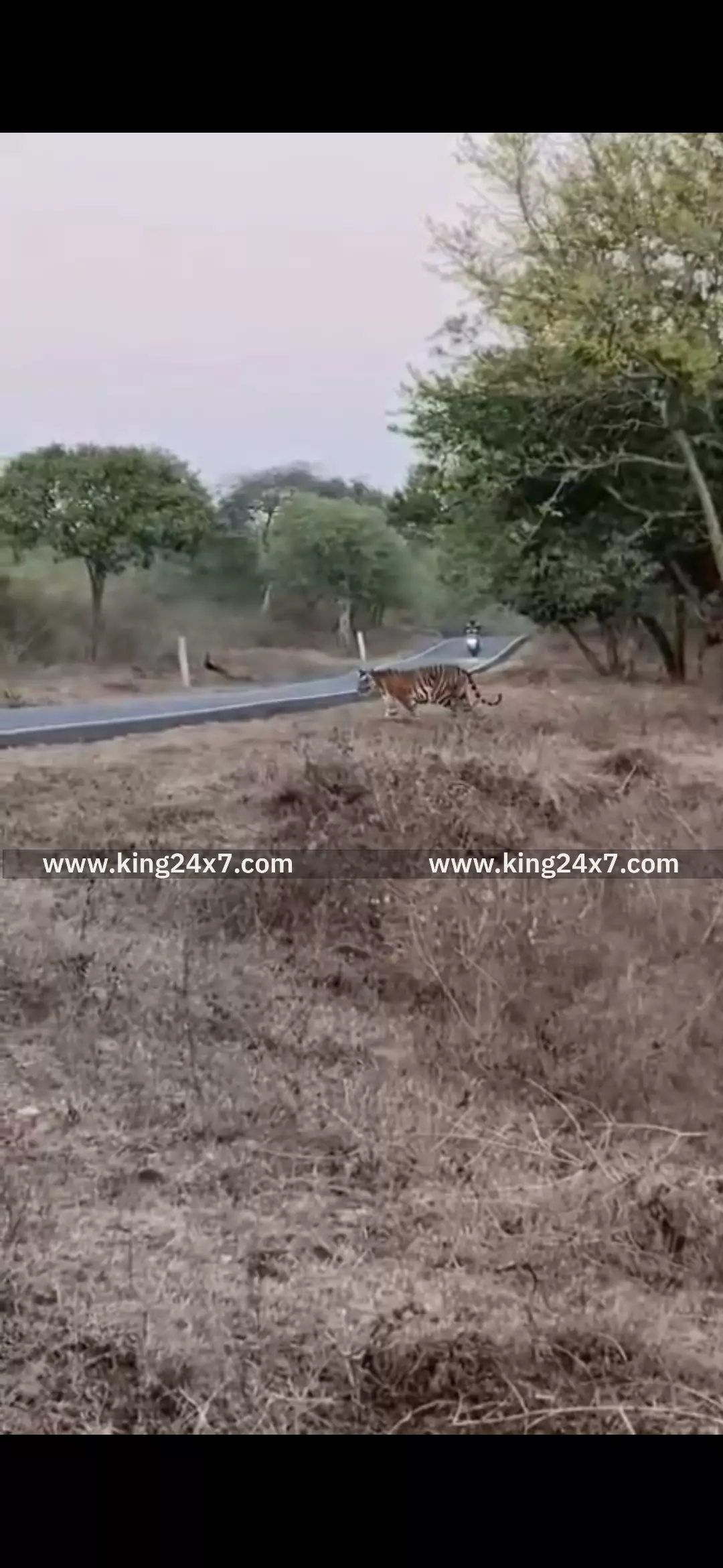 முதுமலை புலிகள் காப்பகம் வெளி மண்டலத்திற்குட்பட்ட மாயார் சாலையில் கம்பீரமாக சாலையை கடந்து சென்ற புலி ...