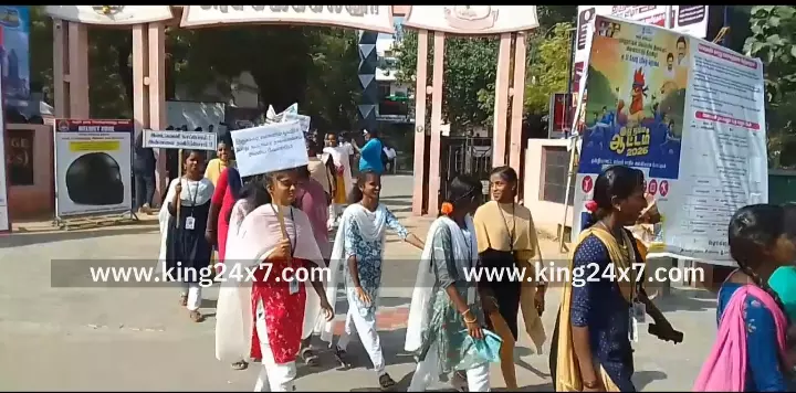 கரூரில் போக்குவரத்து காவல்துறை சார்பில் நடைபெற்ற சாலை பாதுகாப்பு விழிப்புணர்வு பேரணியை கரூர் காவல் துணை கண்காணிப்பாளர் செல்வராஜ் கொடி அசைத்து துவக்கி வைத்தார். விபத்தில்லா தமிழகத்தை உருவாக்குவதற்காக தமிழக அரசு பல்வேறு நடவடிக்கைகளை மேற்கொண்டு வருகிறது. பயணத்தின் போது இருசக்கர வாகன ஓட்டிகள், நான்கு சக்கர வாகன ஓட்டிகள் சாலை விதிகளை கடைபிடித்து சென்றாலே விபத்துக்களை தடுக்க இயலும். பெருகிவரும் வாகன பெருக்கத்தால் சாலையில் விபத்துக்கள் சர்வ சாதாரணமாகிவிட்டது. விபத்துகளினால் உயிர் இழப்புகளும் ஏற்படுகிறது. இதனை தடுப்பதற்காக தமிழக முழுவதும் விழிப்புணர்வு நிகழ்ச்சிகள் நடத்தப்பட்டு வருகிறது. இதன் தொடர்ச்சியாக கரூர் அரசு கலைக்கல்லூரி வளாகத்தில் பசுபதிபாளையம் போக்குவரத்து காவல் ஆய்வாளர் நந்தகுமார் தலைமையில் இருசக்கர வாகன ஓட்டிகள் தலைக்கவசம் அணிய வலியுறுத்தியும், மகிழுந்து ஓட்டுனர்கள் சீட் பெல்ட் அணிய வலியுறுத்தியும் விழிப்புணர்வு பேரணி நடைபெற்றது. இந்த நிகழ்ச்சியில் கரூர் காவல் துணை கண்காணிப்பாளர் செல்வராஜ் சிறப்பு அழைப்பாளராக கலந்துகொண்டு கொடியசைத்து பேரணியை துவக்கி வைத்தார் இந்நிகழ்ச்சியில் கலை அறிவியல் கல்லூரி மாணாக்கர்கள் தலைக்கவசம் அணிய வேண்டியதன் அவசியத்தை உணர்த்தும் வகையில் விழிப்புணர்வு தொடர்பான வாசகங்கள் அடங்கிய பதாகைகளை கையில் ஏந்தியவாறு பொதுமக்களிடையே விழிப்புணர்வை ஏற்படுத்திவாறு தாந்தோணி மலை வரை சென்றனர்.