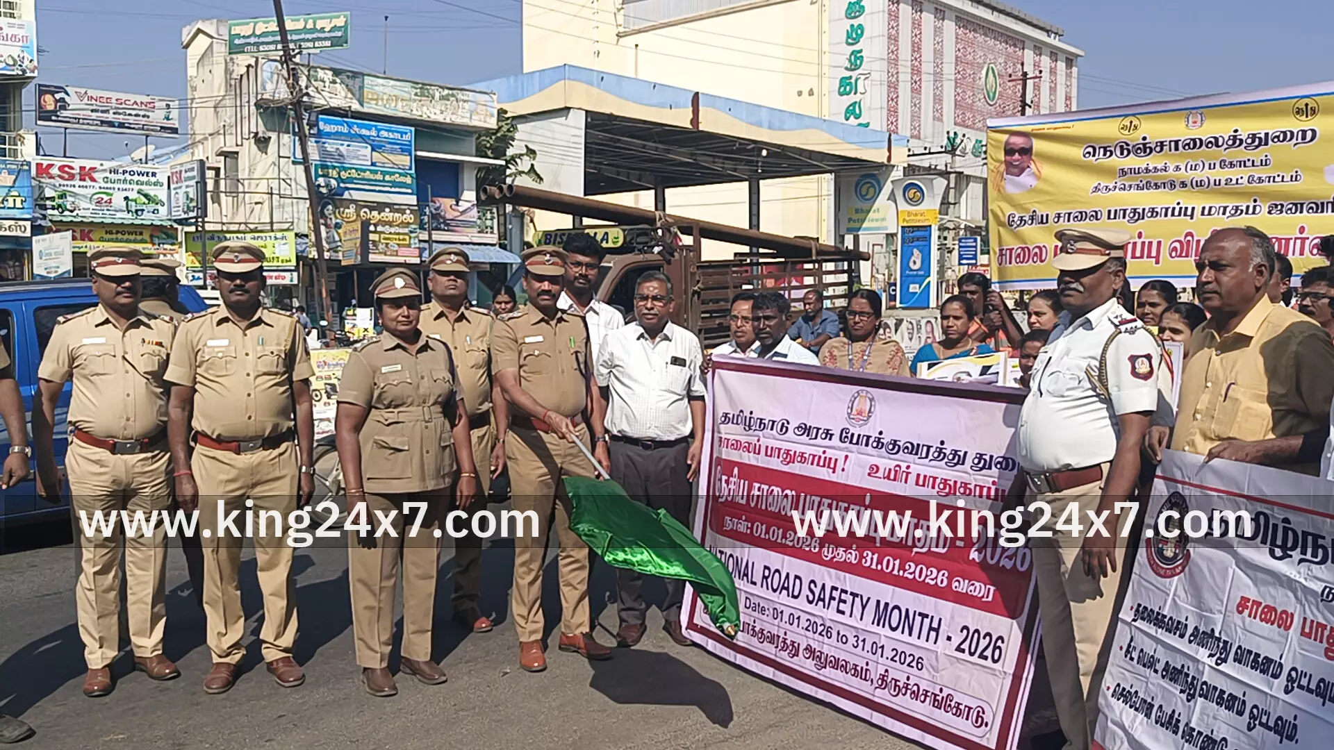 Tiruchengode King 24x7 |23 Jan 2026 9:10 PM ISTதிருச்செங்கோடு உட்கோட்ட நெடுஞ்சாலைத்துறை கட்டுமானம் மற்றும் பராமரிப்பு துறை சார்பில் சாலை பாதுகாப்பு மாதத்தை ஒட்டி விழிப்புணர்வு பேரணி. திருச்செங்கோடு உட்கோட்ட காவல்துறை துணை கண் காணிப்பாளர் கிருஷ்ணன் பேரணியை கொடியசைத்து துவக்கி வைத்தார்
