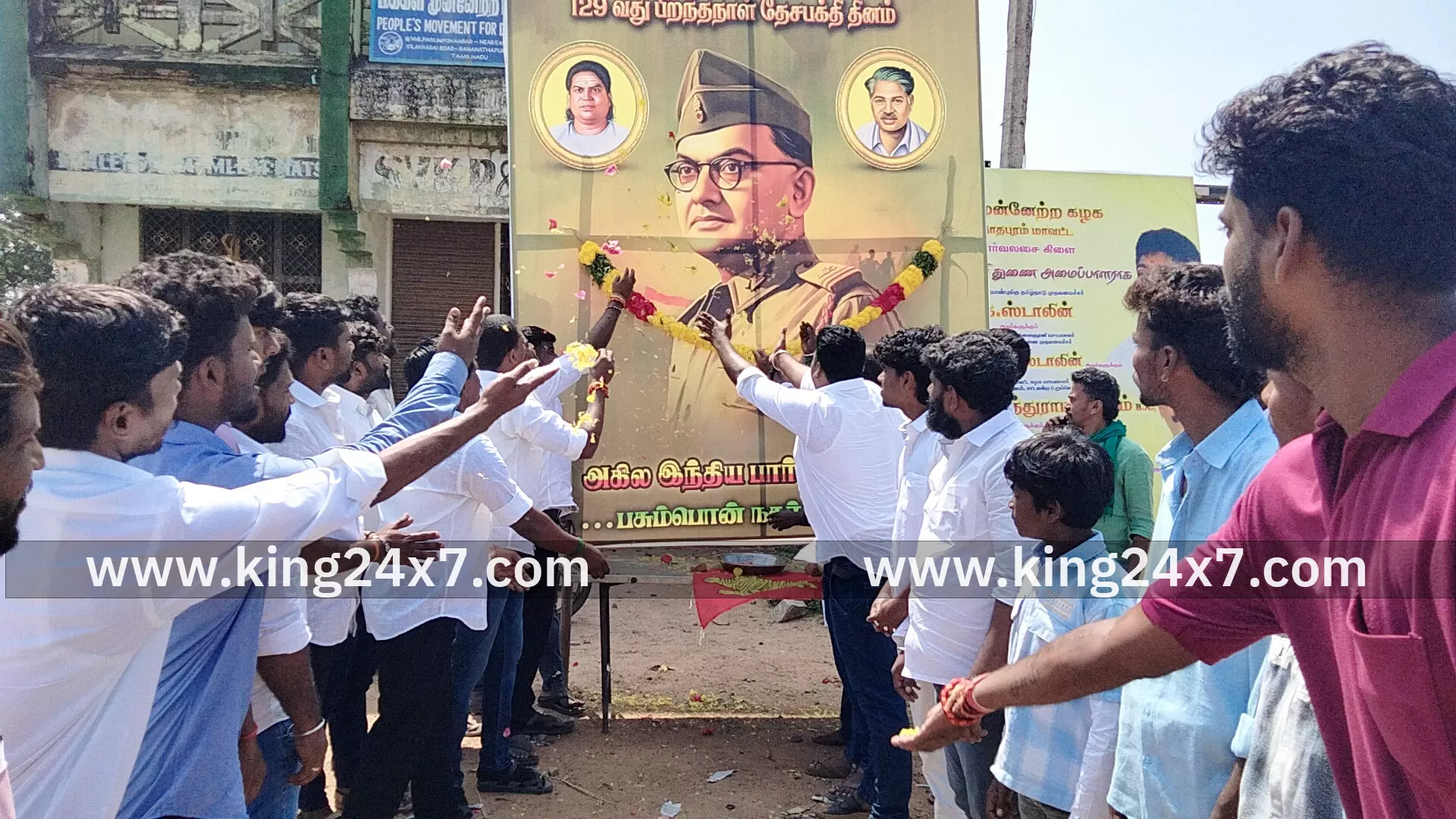 Ramanathapuram King 24x7 |24 Jan 2026 10:45 AM ISTவிடுதலைப் போராட்ட வீரரும் அகில இந்திய பார்வர்ட் பிளாக் கட்சியின் நிறுவனருமான நேதாஜி சுபாஷ் சந்திர போஸ் அவர்களின் 129வது பிறந்தநாள் விழாகொண்டாடும் நடைபெற்றது