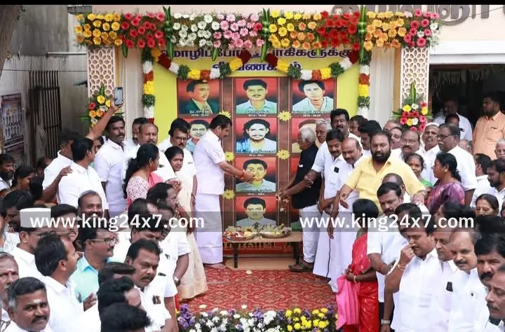 மொழிப்போர் தியாகிகளுக்கு வீரவணக்கம் செலுத்திய முன்னாள் அமைச்சர் செந்தில் பாலாஜி.