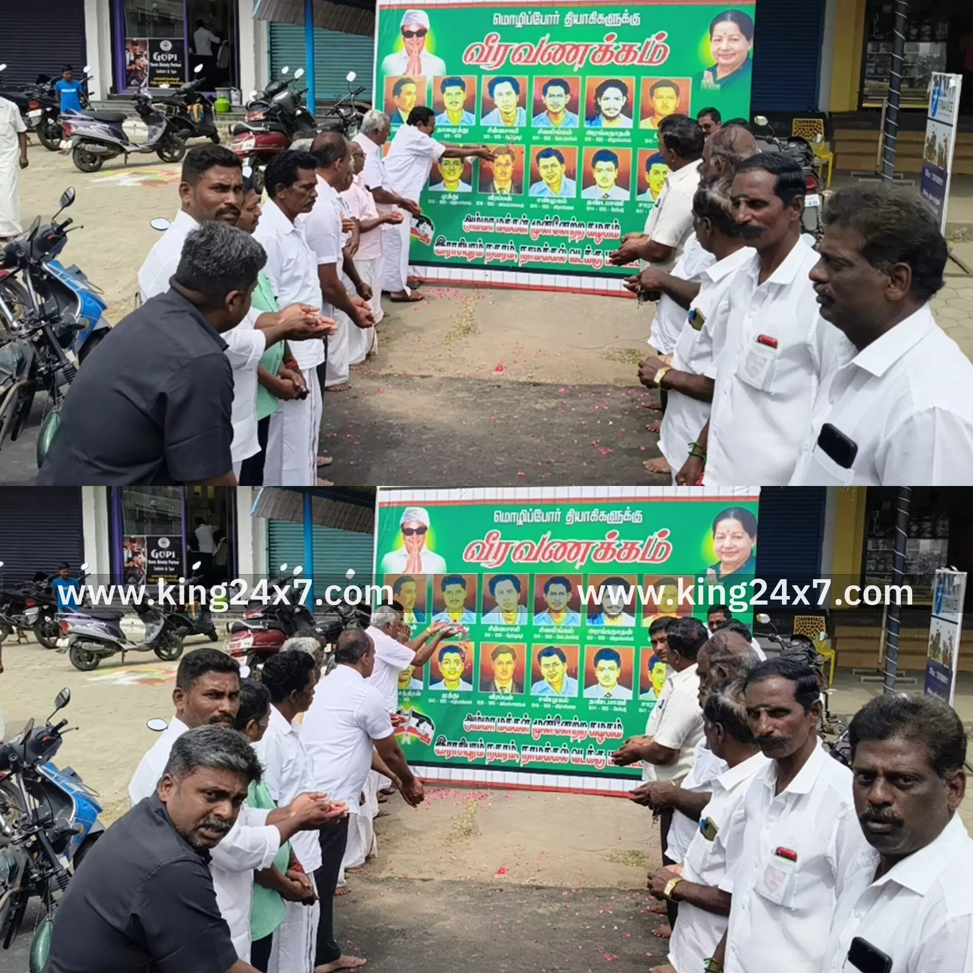 Rasipuram King 24x7 |25 Jan 2026 8:39 PM ISTராசிபுரத்தில் அம்மா மக்கள் முன்னேற்றக் கழகத்தின் சார்பில் மொழிப்போர் தியாகிகளுக்கு வீரவணக்கம் செலுத்தினர்..