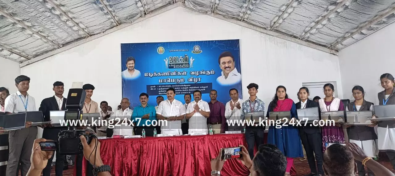முத்தாயம்மாள் இன்ஸ்டிடியூஷனில் மாணவர்களுக்கு மடிக்கணினிகள் வழங்கும் மாபெரும் விழாவில் பங்கேற்ற அமைச்சர் மற்றும் எம்.பி