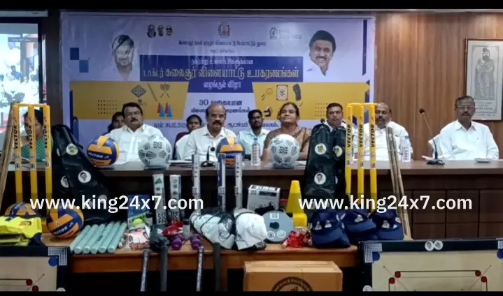 Karur King 24x7 |6 Feb 2026 9:00 PM ISTகரூரில் கலைஞர் விளையாட்டு உபகரணங்கள் வழங்கும் திட்டத்தின் கீழ் இளைஞர்களுக்கு விளையாட்டு உபகரணங்களை வழங்கினார் மாவட்ட ஆட்சியர் தங்கவேல்.