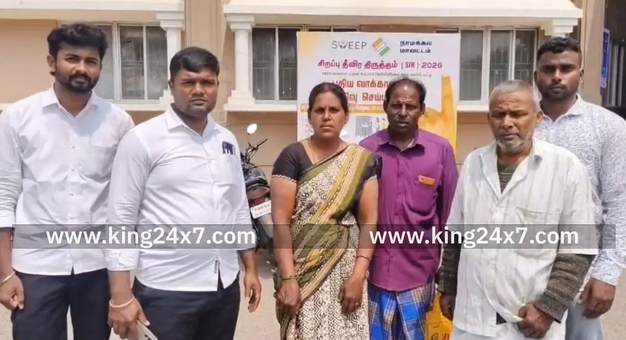 இதன் ஒரு பகுதியாக, கடந்த நாட்களில் ராசிபுரம் வட்டாட்சியர் அலுவலகத்தை பொதுமக்கள் ஆடு, மாடுகளுடன் முற்றுகையிட்டு போராட்டம் நடத்தினர்.இந்த போராட்டத்தை தூண்டியதாக கூறி, மெட்டாலா பகுதியைச் சேர்ந்த சமூக ஆர்வலர் பாலமுருகன் மீது ராசிபுரம் வட்டாட்சியர் புகார் அளித்ததன் பேரில், காவல்துறையினர் பொய்யான முதல் தகவல் அறிக்கை பதிவு செய்துள்ளதாக பொதுமக்கள் குற்றச்சாட்டு தெரிவித்தனர்.மேலும், அரசு புறம்போக்கு நிலத்தை ஆக்கிரமித்து வீடு கட்டி வரும் ரியல் எஸ்டேட் அதிபர் நல்லுசாமி என்பவருக்கு ராசிபுரம் வட்டாட்சியர் ஆதரவாக செயல்படுகிறார் என்றும், அரசு நில ஆக்கிரமிப்பை தடுப்பதில் அலட்சியம் காட்டுகிறார் என்றும் மக்கள் குற்றம் சாட்டினர்.இதனை கண்டித்து, ராசிபுரம் வட்டாட்சியர் மீது உடனடி துறை ரீதியான நடவடிக்கை எடுக்க வேண்டும் என வலியுறுத்தி, மெட்டாலா பகுதியைச் சேர்ந்த பொதுமக்கள் நாமக்கல் மாவட்ட ஆட்சியர் அலுவலகத்திற்கு வந்து, மாவட்ட ஆட்சியர் முன்பு தரையில் அமர்ந்து தர்ணா போராட்டத்தில் ஈடுபட்டனர்.இந்த சம்பவத்தால் கலெக்டர் அலுவலக வளாகத்தில் பரபரப்பு ஏற்பட்டது.பின்னர் அதிகாரிகள் போராட்டக்காரர்களுடன் பேச்சுவார்த்தை நடத்தி, உரிய விசாரணை மேற்கொள்ளப்படும் என உறுதி அளித்தனர்