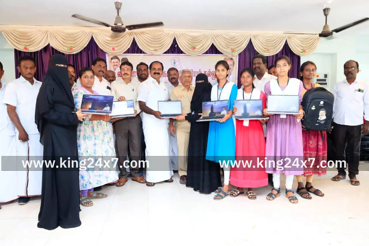 நைனா முகம்மது மகளிர் கலை அறிவியல் கல்லூரி மாணவிகளுக்கு அமைச்சர் சிவ வீ மெய்யநாதன் தமிழக அரசு மடிக்கணினிகளை வழங்கினார்.