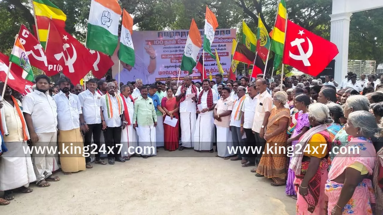 100நாள்வேலை_இனிஇல்லை அண்ணல் காந்தியடிகள் பெயரை நீக்கி 100 நாள் வேலைத் திட்டத்தை ஒழிக்கும் சட்டத்தை கொண்டு வந்த ஒன்றிய பா.ஜ.க. அரசையும், ஒத்து ஊதும் அதிமுகவையும் கண்டித்து கள்ளக்குறிச்சி தெற்கு மாவட்டம் கள்ள்க்குறிச்சி சட்டமன்ற தொகுதி தியாகதுருகம் ஒன்றியம் மதச்சார்பற்ற முற்போக்குக் கூட்டணி சார்பில் மாபெரும் கண்டன ஆர்ப்பாட்டம்!