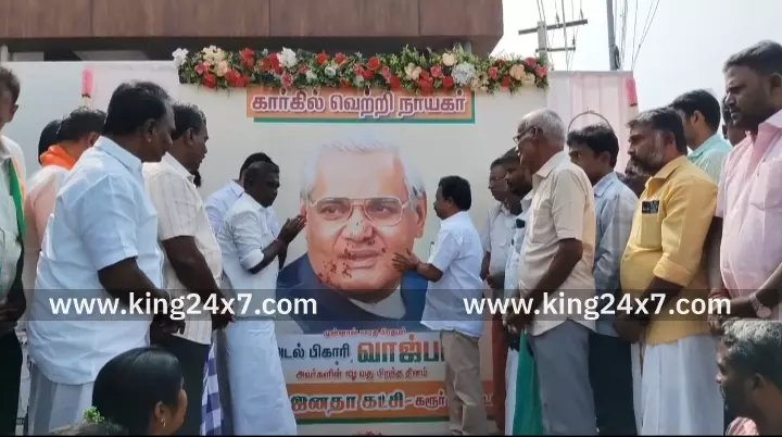 கரூரில்,முன்னாள் பாரத பிரதமர் அடல் பிகாரி வாஜ்பாயின் 101 வது பிறந்த நாளை கொண்டாடிய பாரதிய ஜனதா கட்சியினர்.
