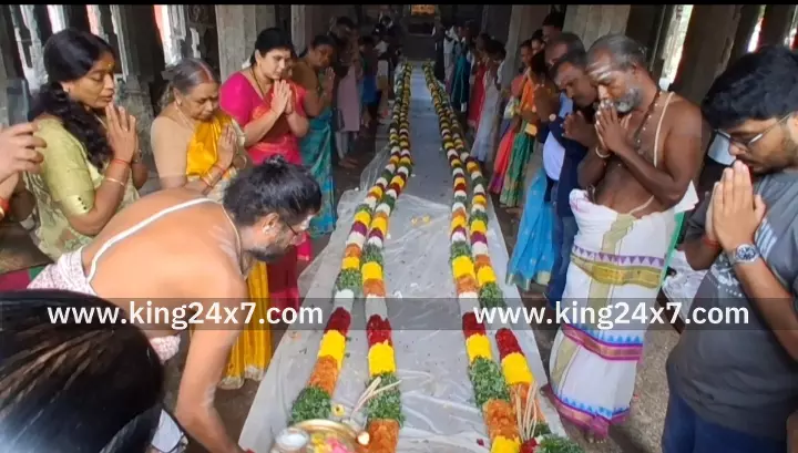 Karur King 24x7 |1 Jan 2026 3:25 PM ISTகரூர்-புத்தாண்டை முன்னிட்டு 120 அடி உயரம் உள்ள கோவில் ராஜகோபுரத்தில் மலர்மாலை அணிவிக்கும் நிகழ்ச்சியில் பக்தர்கள் பரவசம்.