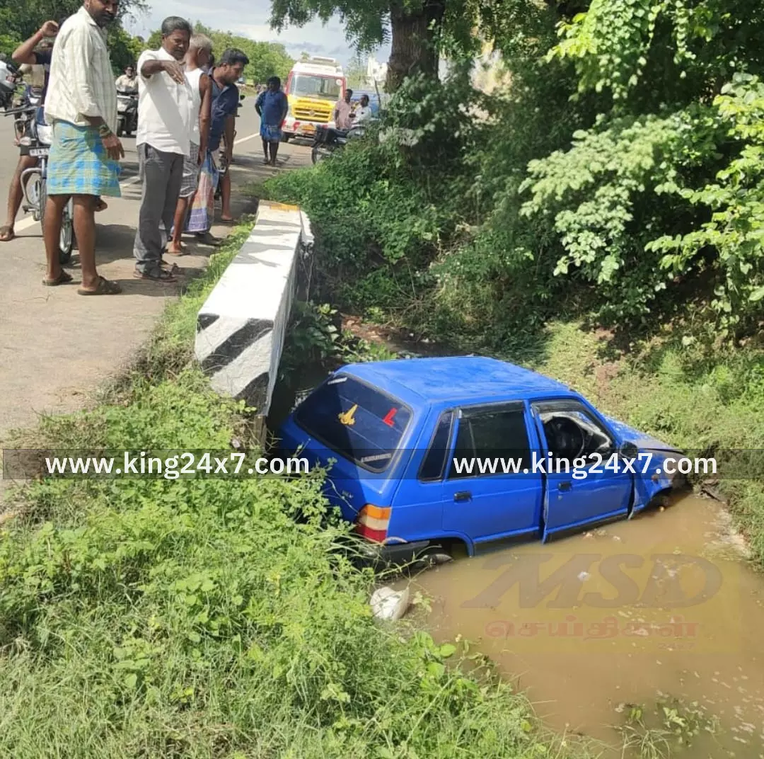 திண்டுக்கல் மாவட்டம் வேடசந்தூர் RMTC- டிப்போ அருகே அதிவேகமாக வந்த கார் கட்டுப்பாட்டை இழந்து சாலை ஓரப் பள்ளத்தில் கவிழ்ந்து விபத்து ஏற்பட்டது. இந்த விபத்தில் இருவர் 2 படுகாயம் வேடசந்தூர் அரசு மருத்துவமனையில் சிகிச்சைக்காக அனுமதி இது குறித்து வேடசந்தூர் போலீசார் விசாரணை மேற்கொண்டு வருகின்றனர்.