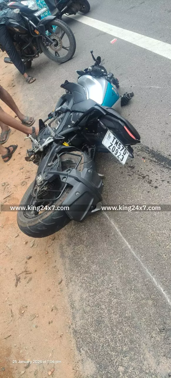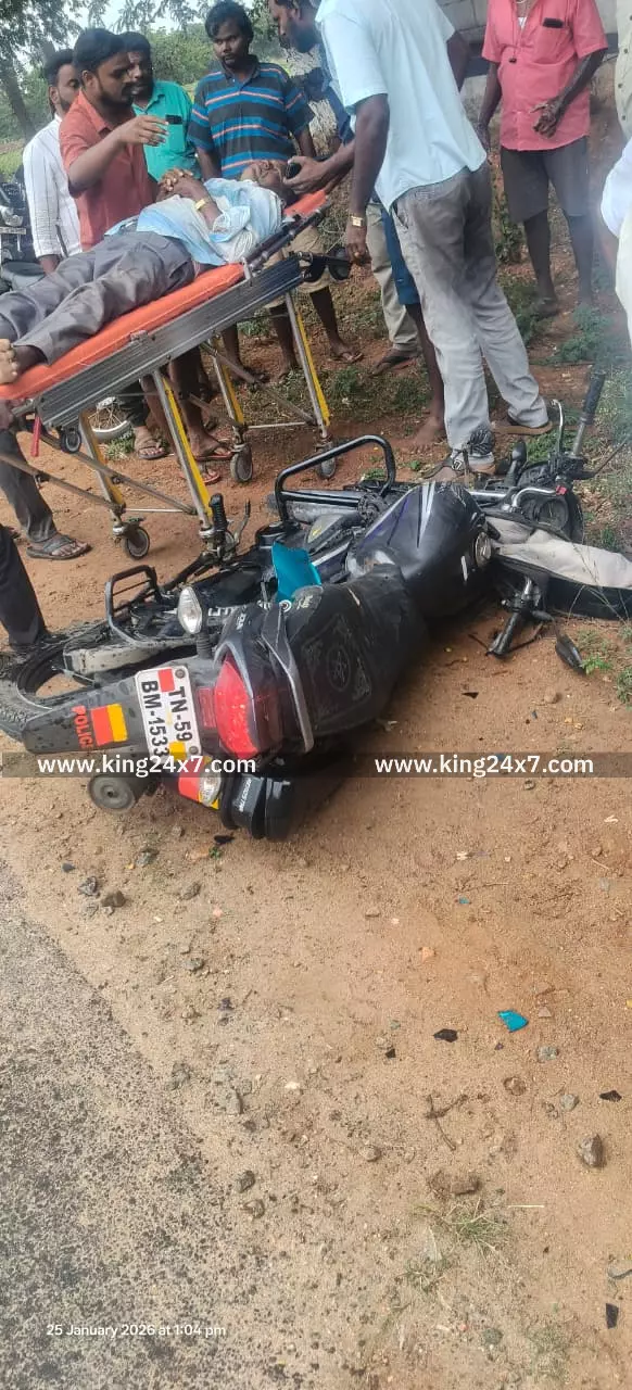 வேடசந்தூர் அருகே இரண்டு இருசக்கர வாகனங்கள் மோதி விபத்து - ஓய்வு பெற்ற காவலர் உட்பட 2 பேர் காயம்