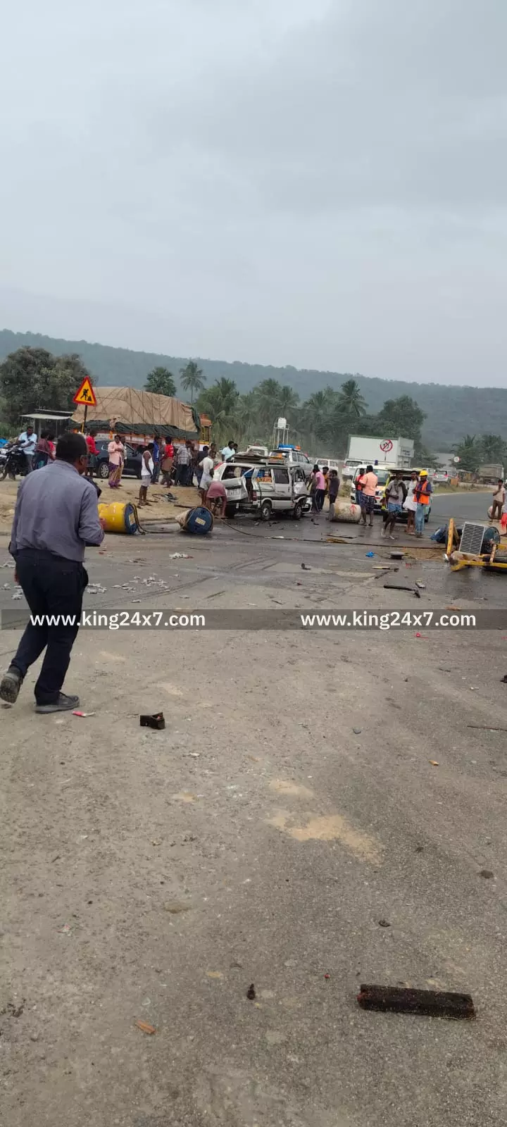 தொப்பூர் அருகே 2 லாரி, 2 கார் பைக் மோதிய விபத்தில், நான்கு பேர் உயிரிழப்பு