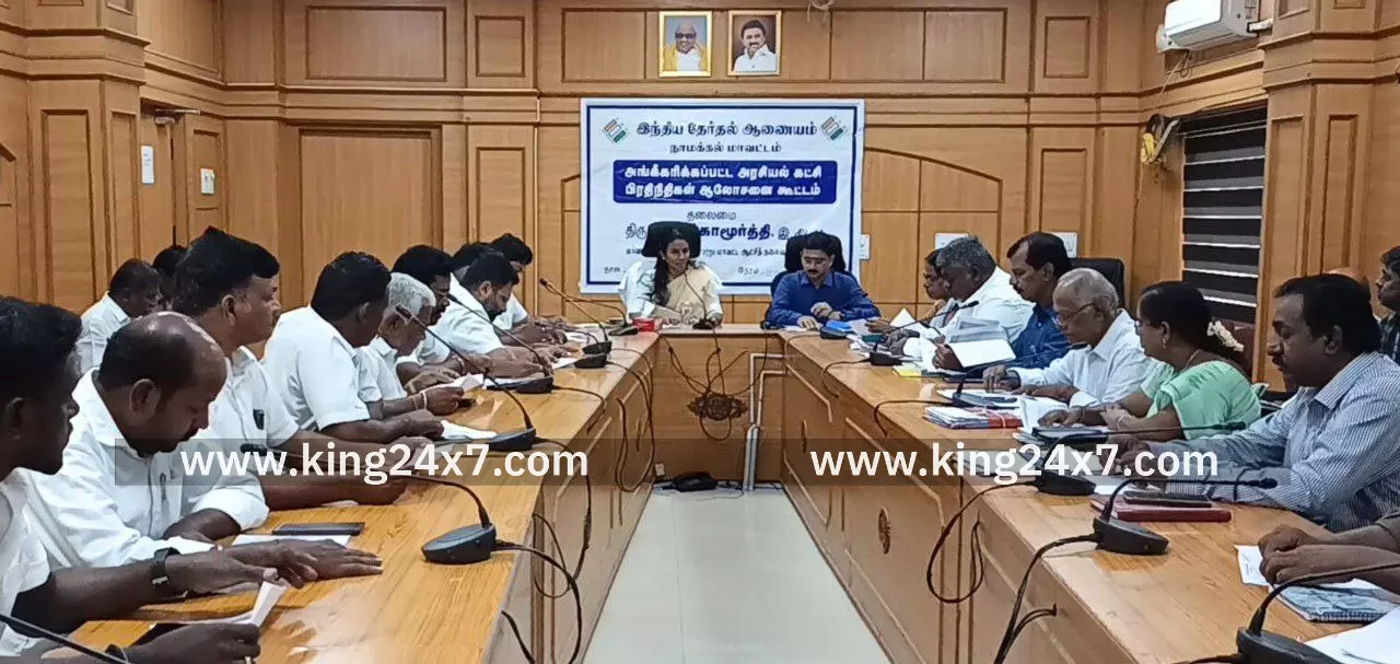 நாமக்கல் மாவட்ட தேர்தல் அலுவலர் மற்றும் மாவட்ட ஆட்சியர் தலைமையில் வாக்காளர் பட்டியல் சிறப்பு தீவிர திருத்தம், 2026, சிறப்பு முகாம் தொடர்பாக அங்கீகரிக்கப்பட்ட அரசியல் கட்சியினரின் பிரதிநிதிகளுடனான ஆலோசனை கூட்டம் நடைபெற்றது.