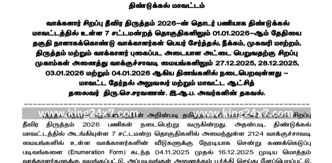 Dindigul King 24x7 |23 Dec 2025 10:10 PM ISTDindigul