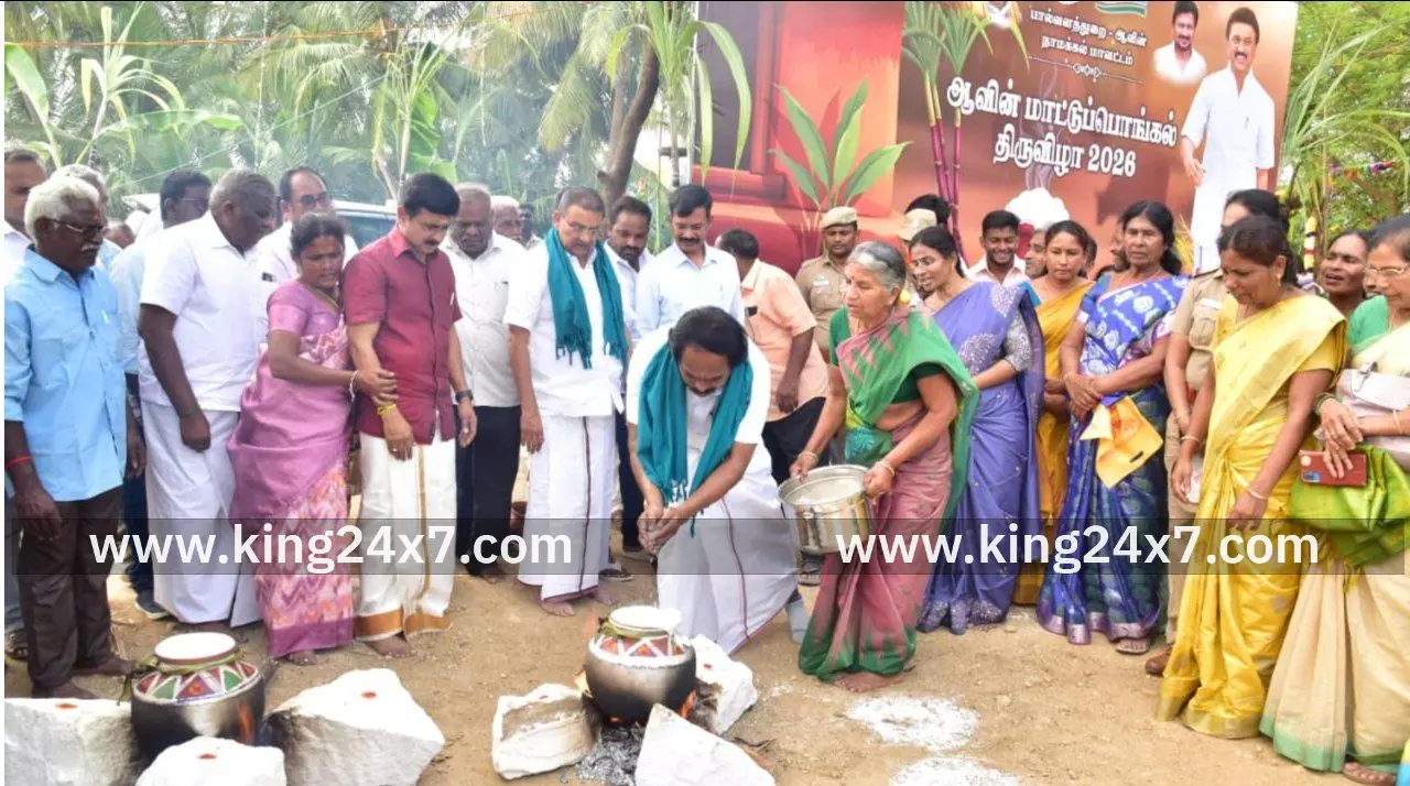 நாமக்கல் மாவட்டம், எலச்சிபாளையம் ஊராட்சி ஒன்றியம், பொம்மம்பட்டி ஊராட்சி காட்டூர் கிராமத்தில் பால்வளத்துறை அமைச்சர் த.மனோதங்கராஜ் மற்றும் ஆதிதிராவிடர் நலத்துறை அமைச்சர் மருத்துவர் மா.மதிவேந்தன் ஆகியோர், மாவட்ட ஆட்சியர் தலைமையில், முன்னாள் சட்டமன்ற உறுப்பினர் கே.எஸ்.மூர்த்தி பால்வளத்துறை இயக்குநர் மற்றும் நிர்வாக இயக்குநர் (ஆவின்) அ.ஜான்லூயிஸ், ஆகியோர் முன்னிலையில் பால் உற்பத்தியாளர்கள் கூட்டுறவு சங்கத்தின் உறுப்பினர் ப.மதிவானன் அவர்களின் விவசாய நிலத்தில் நடைபெற்ற ”ஆவின் மாட்டுப் பொங்கல் திருவிழா” 2026ல் கலந்துகொண்டார்.பால்வளத்துறை அமைச்சர் த.மனோதங்கராஜ் , நாமக்கல் மாவட்டம், எலச்சிபாளையம் ஊராட்சி ஒன்றியம், பொம்மம்பட்டி ஊராட்சி காட்டூர் கிராமத்தில் உள்ள பால் உற்பத்தியாளர்கள் கூட்டுறவு சங்கத்தின் உறுப்பினர் ப.மதிவானன் அவர்களின் விவசாய நிலத்தில் நடைபெற்ற ”ஆவின் மாட்டுப் பொங்கல் திருவிழா” 2026ல் கலந்து கொண்டு சிறப்பித்தார். மேற்படி நிகழ்ச்சி நடைபெறும் இடத்திற்கு சுமார் 500 மீட்டர் தூரத்திற்கு மாட்டுவட்டியினை தானே இயக்கி கிராமிய முறையில் பயணித்து, வந்தடைந்தார். தொடர்ந்து, பாரம்பரிய முறையில் நடைபெற்ற ”ஆவின் மாட்டுப் பொங்கல் திருவிழா” 2026ல் கலந்து கொண்டு, விவசாய சங்க உறுப்பினர்களுடன், புதுப்பானையில் பச்சிரிசி, வெல்லமிட்டு பொங்கல் வைத்து கொண்டாடினார். மேலும், அங்கிருந்த கால்நடைகளுக்கு உணவளித்து மகிழ்ந்தார். அதனைத் தொடர்ந்து, பால் உற்பத்தியாளர்கள், பால் உற்பத்தியாளர் சங்க உறுப்பினர்கள், விவசாயிகள் ஆகியோருடன் கிராமிய முறையில் கயிற்று கட்டிலில் அமர்ந்து கலந்துரையாடி, அவர்களுடன் குழு புகைப்படம் எடுத்துக் கொண்டார். தொடர்ந்து, பயனாளிகளுக்கு அரசு நலத்திட்ட உதவிகளை வழங்கினார்.இந்நிகழ்ச்சியில், எலச்சிபாளையம் அட்மாகுழு தலைவர் மு.தங்கவேல், மாவட்ட வருவாய் அலுவலர் மா.க.சரவணன், பொது மேலாளர் (ஆவின்) மரு.ஆர்.சண்முகம், துணைப்பதிவாளர் (பால்வளம்) ஐ.சண்முகநதி உட்பட துறைச் சார்ந்த அலுவலர்கள் மற்றும் ஆவின் பால் உற்பத்தியாளர்கள் ஆகியோர் கலந்து கொண்டனர்.
