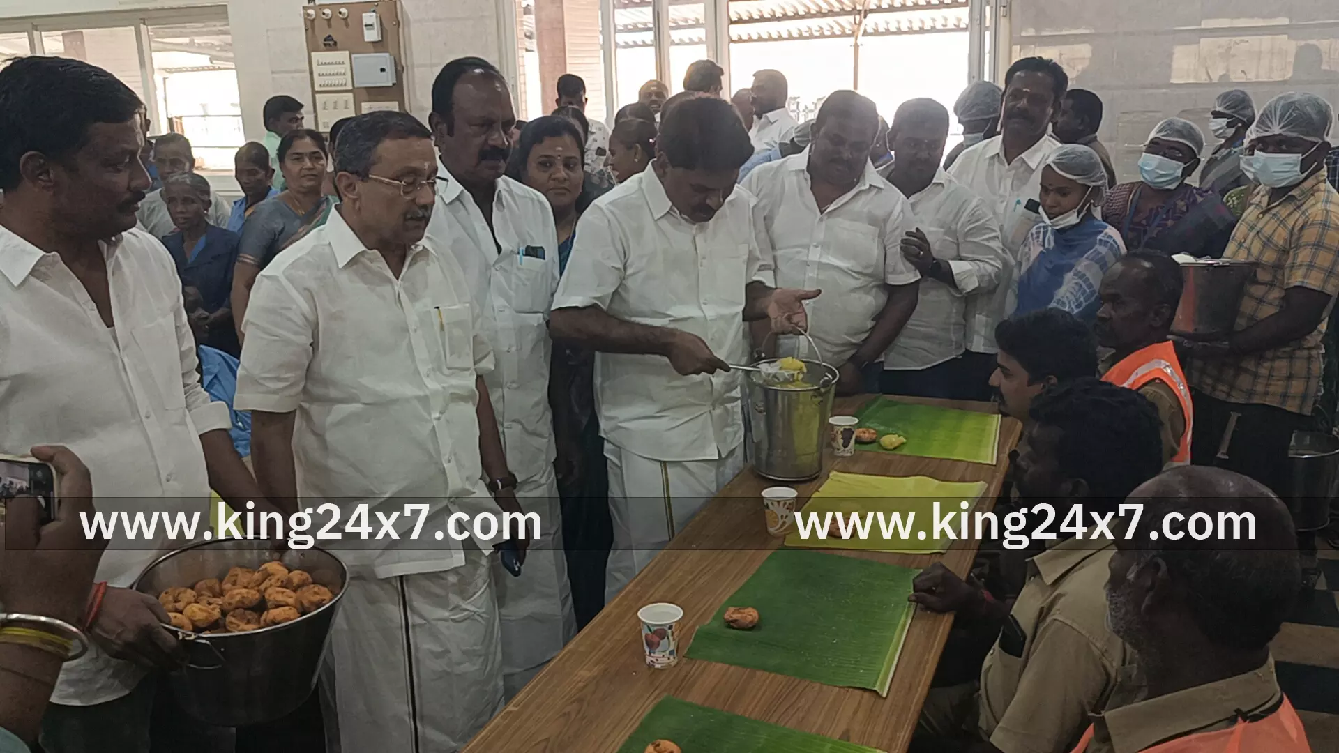 திருச்செங்கோடு நகராட்சியில் தூய்மை பணியாளர் உள்ளிட்ட 348 பேருக்கு காலை உணவு திட்டம் எம்எல்ஏ ஈஸ்வரன் தொடங்கி வைத்தார்