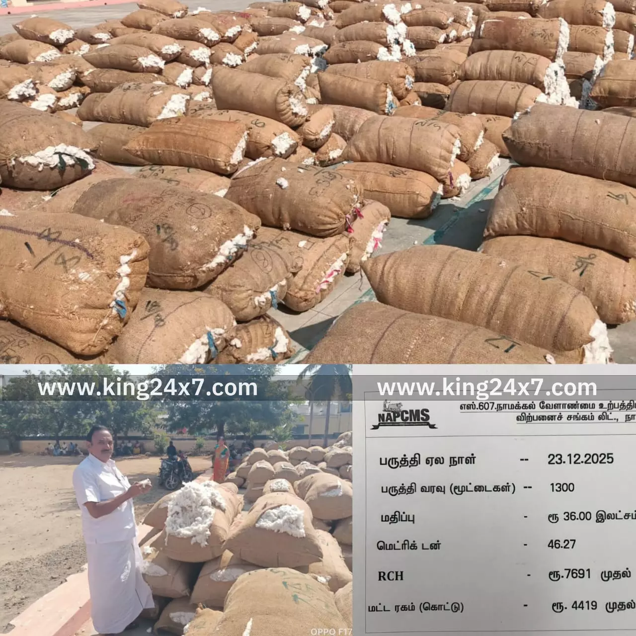 Namakkal King 24x7 |23 Dec 2025 7:55 PM ISTஅண்டை மாவட்டங்களில் இருந்தும் விவசாயிகள் 1300 மூட்டை பருத்தியை விற்பனைக்கு கொண்டு வந்து இருந்தனர். இந்த பருத்தி மூட்டைகள் ரூ.36 லட்சத்துக்கு விற்பனையானது.